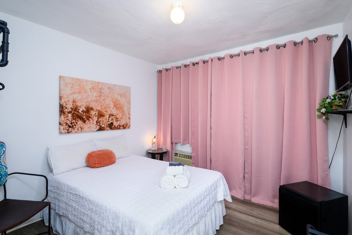 Здесь вы восстановите связь с природой. Это отдельное каркасное здание 10x12 рядом с небольшим главным домом. Туалет и душ находятся на улице, но являются частными. В душе есть горячая вода. Большая открытая душевая комната с дождем и обычными душевыми головками. Кондиционер в комнате очень холодный. Кровать размера Queen size с матрасом из пены Владелец живет на полную ставку на территории для любых нужд. Отзывы говорят сами за себя: мое жилье уникально, безопасно, спокойно и комфортно.