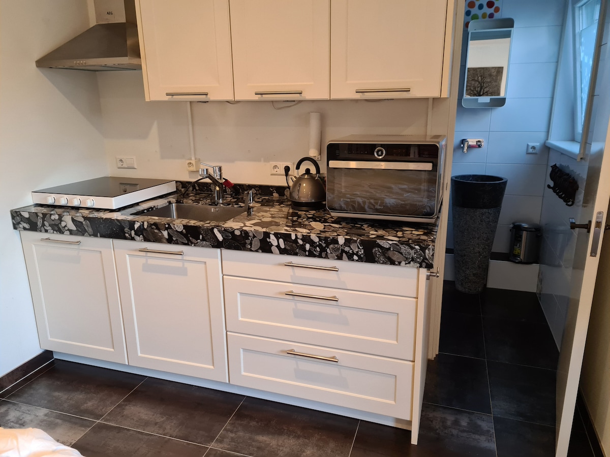 Современно меблированная студия с комфортабельным King size Boxspring и солнечной собственной террасой. Пляж, лес, лес, парк, магазины (Lidl, пекарня и т. д.) и бульвар в пешей доступности. Мы арендуем только одну комнату. Других гостей нет. Большой SmartTV с Netflix, быстрый Wi-Fi. Роликовые ставни и экраны. Кухня: посудомоечная машина, варочная панель на 4 конфорки (2021), вытяжка, комбинированная духовка (2021), чайник, кофеварка на 2 х, тостер, посуда. В совершенно новой ванной комнате есть туалет и тропический душ.