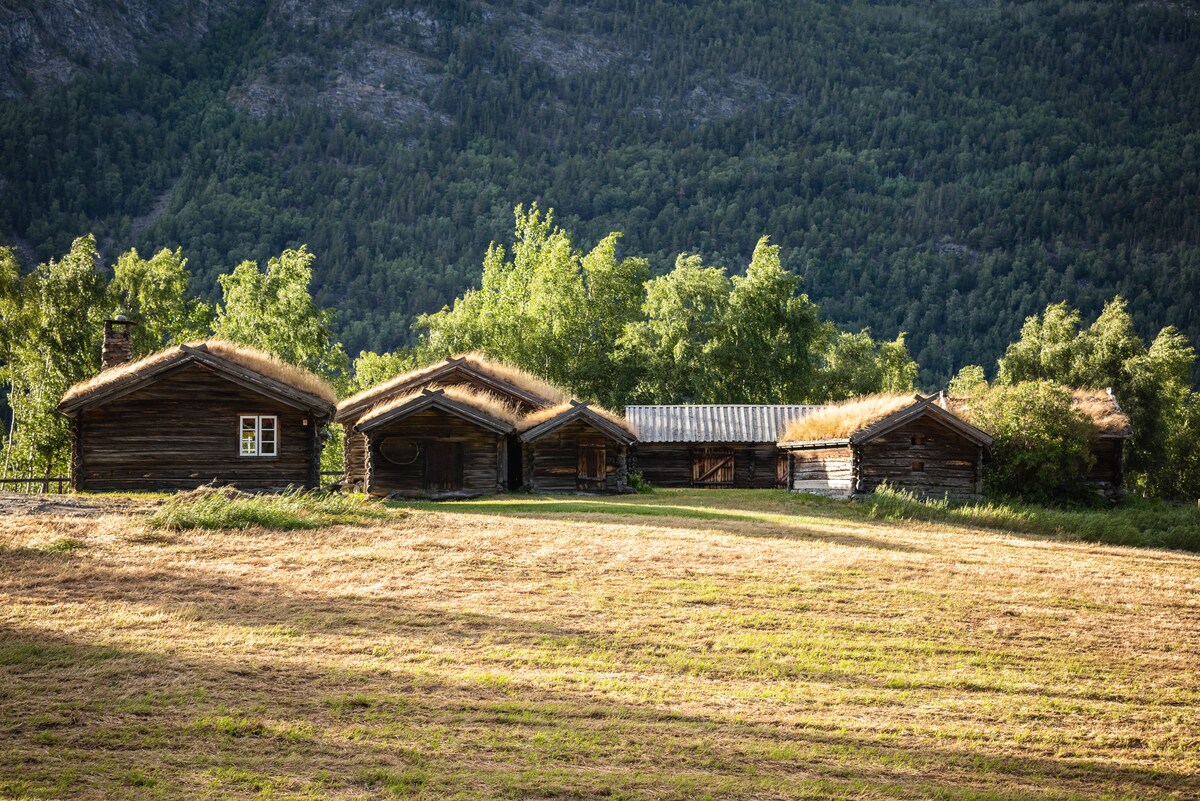 Sjarmerende tømmerhytte på gårdstun