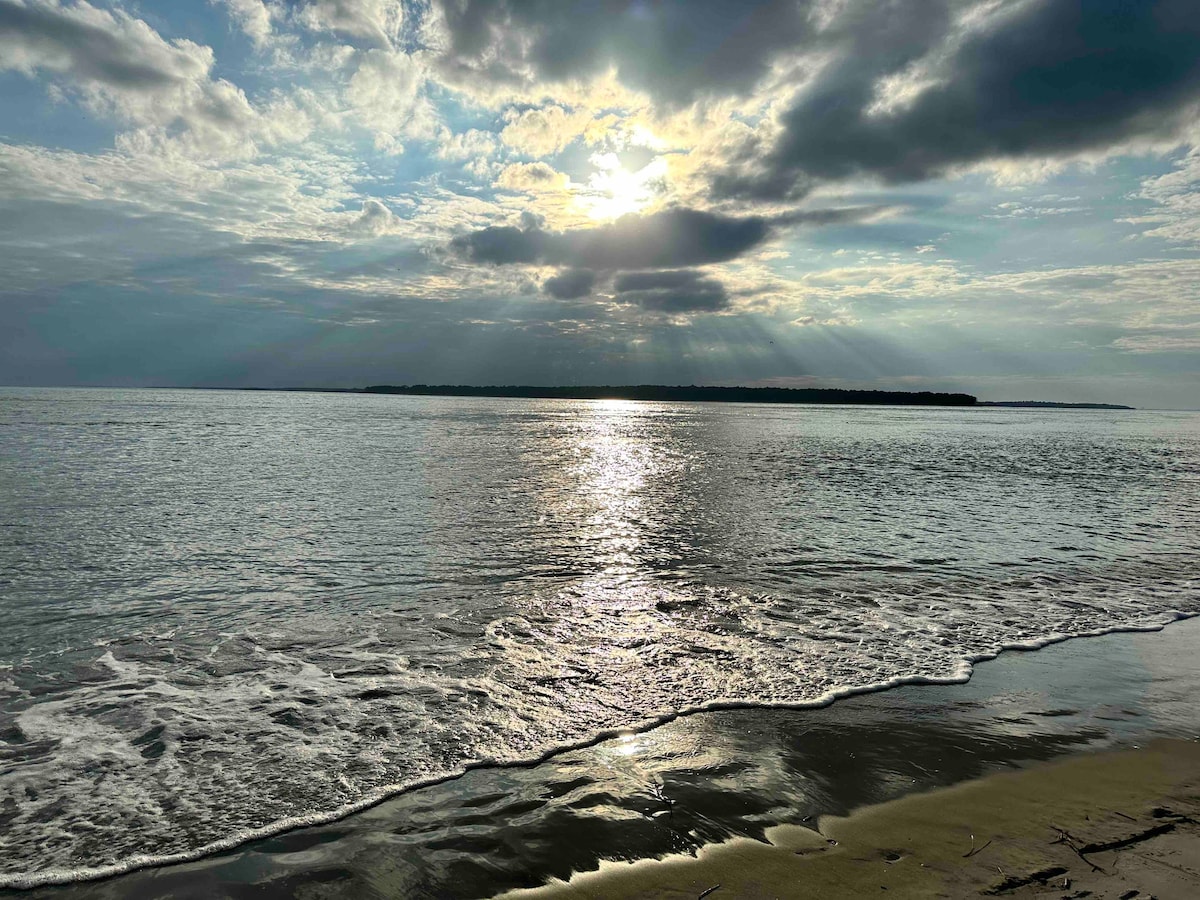 Расположенный в птичьем заповеднике на участке с дубовым приливным ручьем с обширным видом на гавань Чарльстона, выпейте кофе с друзьями и родственниками и полюбуйтесь впечатляющим болотным утренним восходом солнца. Расположена в нескольких минутах ходьбы от знаменитого пляжа «Край Америки» Folly Beach, для приятной экскурсии по пляжу предоставляются шезлонги, кулеры и полотенца. Жилье расположено в центре города, в нескольких минутах езды от исторического Чарльстона, парка Джеймс-Айленд и соседних барьерных островов. Внеуличная парковка.