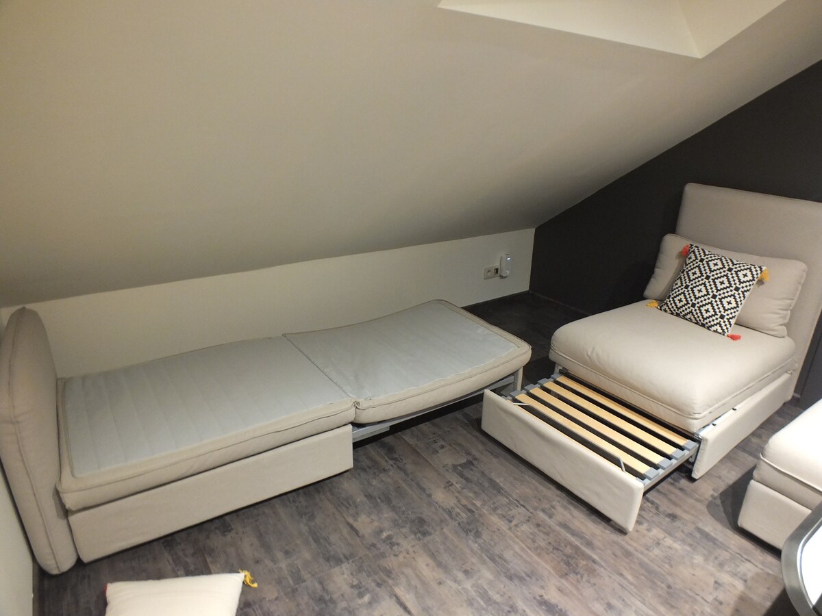 On the edge of a peaceful village on the right bank of the Seine River a few kilometers from Fontainebleau and Samois sur Seine, 40 minutes by train from Paris, this very spacious flat sleeps up to four people in two or more fixed beds in separate rooms. In the living room more guests could possibly be accommodated for an extra charge per person per night. 4 crash pads are available to climbers on site at a minimal extra cost.