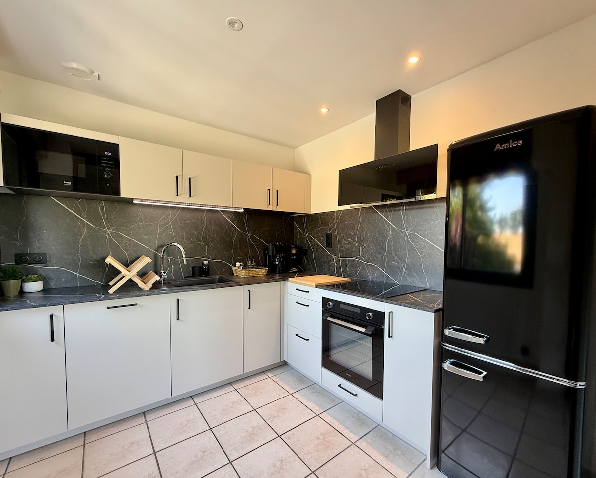 Новая тихая студия. Отдельный вход Частный доступ к оздоровительному центру с джакузи, сауной и душем с несколькими струями. ✨✨Доступ в оздоровительный центр будет с 18:00 до 20:00, чтобы приватизировать помещение. ✨✨ В студии есть: — Функциональная кухня с духовкой, комбинированным холодильником, микроволновой печью. — ванная комната с итальянским душем, раковиной и унитазом; — главная комната с кроватью 140 см, диваном и телевизором со Smart TV. Полотенца/халаты и постельное белье включены в цену. Уборка включена, кроме кухни.