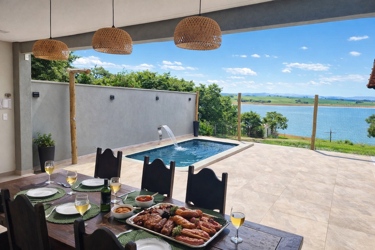 Жилье расположено в Эстанис-де-Фернас-Пимента. Очень уютное просторное жилье. Недавно отремонтированный дом с 4 спальнями, 4 ванными комнатами, зоной для гурманов с большим бассейном и джакузи с подогревом, барбекю, морозильной камерой, мраморным столом, промышленной плитой и другими. Чтобы расслабиться, есть большой балкон с захватывающим видом на плотину Фурнас. Идеально подходит для тех, кто хочет покоя и/или вечеринок! Отличное расположение: в 7 километрах от города Пимента, в 20 километрах от Санто-Хиларио и примерно в 45 километрах от Капитолия.