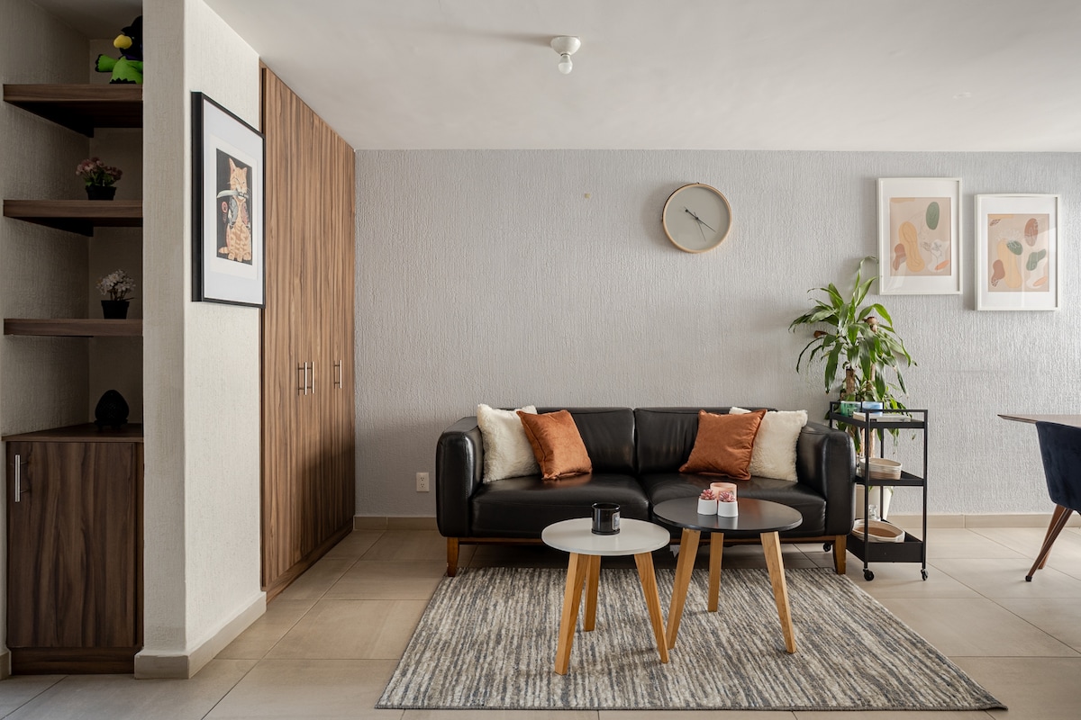 Остановитесь в современной, полностью оборудованной квартире, созданной для комфорта, удобства и легкого доступа к главным событиям Мехико и аэропорту. Независимо от того, едете ли вы на концерт, отправляетесь в короткую поездку или делаете пересадку, в этом жилье есть всё необходимое для комфортного и беззаботного пребывания. 🚗 Расстояние: • 7 минут — Autódromo и Foro GNP • 10–15 минут — аэропорт • 15 минут — Дворец спорта. 🔥 Бронируйте сейчас, пока нужные вам даты свободны.