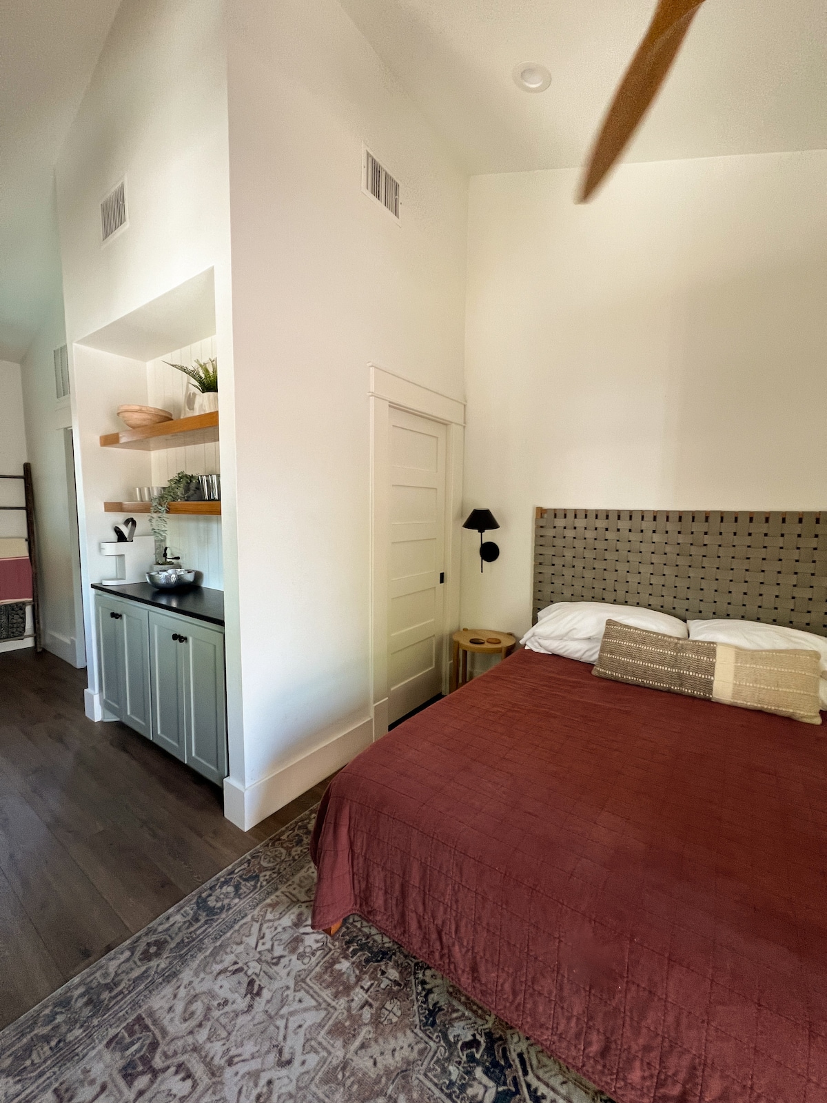 NEW CONSTRUCTION 300sf private guest house! KING BED. Vaulted ceilings, tv, kitchenette with a table to work or eat at, refrigerator, sink, microwave, air fryer & coffee bar. There’s a spacious bathroom with walk in shower! Fast WiFi and plenty of closet/drawer space. Perfect getaway close to the hospital district, TCU, stockyards, Fort Worth Zoo & amazing restaurants. HVAC system includes a REME HALO® to reduce viruses including SARS-CoV-2 virus causing COVID-19. This space is for 2 people max.