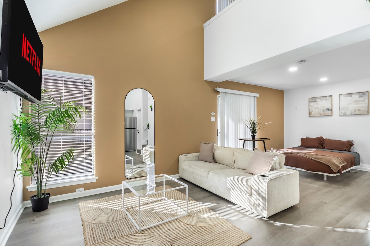 ✨New Modern Loft w/ 2 Queen Beds, Double Balcony – Near Downtown & Dallas Love Field Airport✨✈️ Enjoy this bright two-story loft minutes from Dallas Love Field Airport and downtown fun. With two queen beds, a cozy living area, full kitchen, high-speed Wi-Fi, and double balconies, it’s perfect for up to 4 guests. Stylish, spacious, and close to everything Dallas has to offer. 🌃