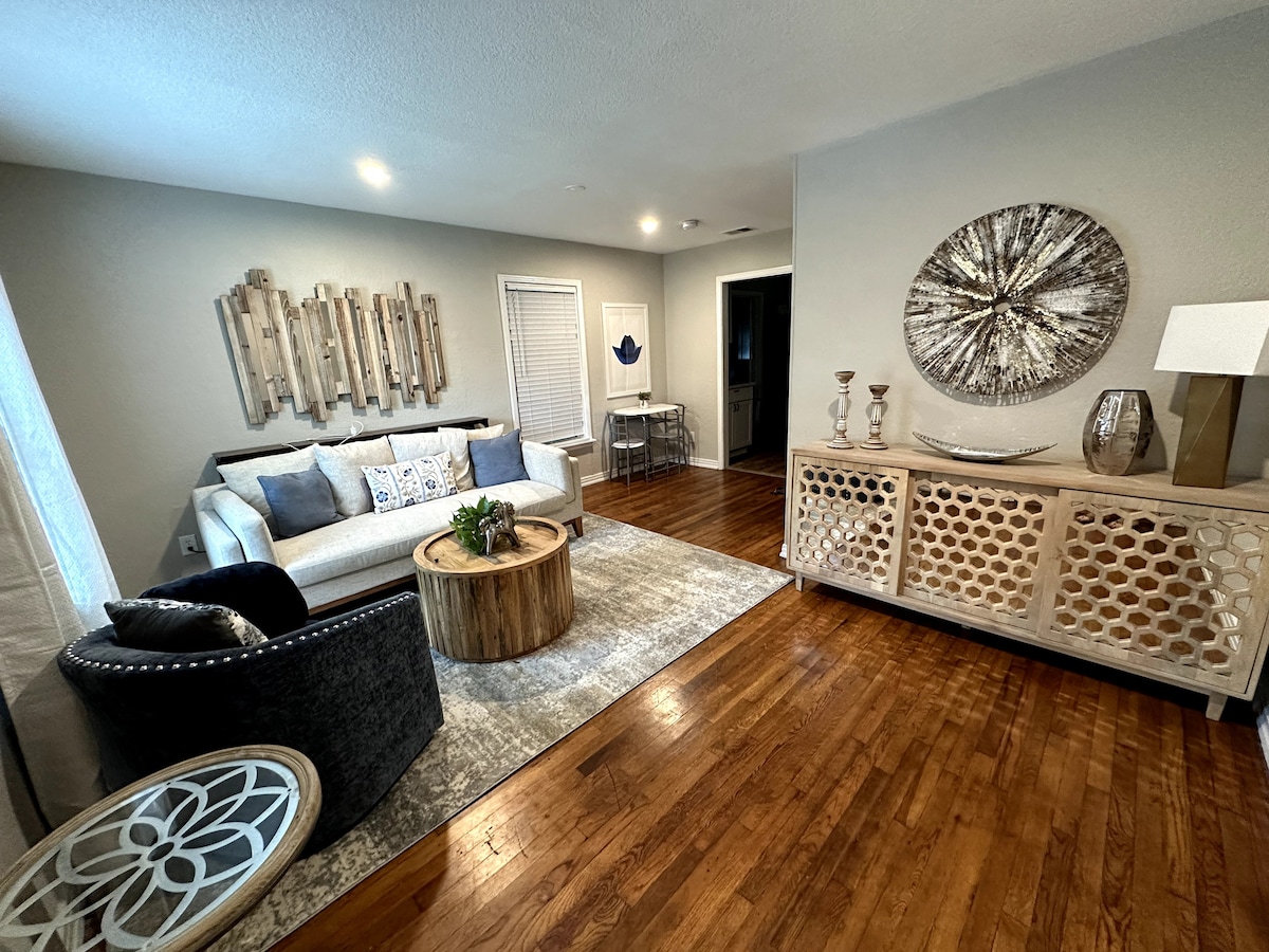 Отдых в Далласе, созданный для уникального и спокойного знакомства с этим городом. Великолепная, тихая и частная улица и дом. Этот дом с 2 спальнями и 2 ванными комнатами, элегантной гостиной и столовой. Телевизионная комната с 77-дюймовым OLED-телевизором Sony Smart TV. Снаружи есть сауна для двух человек. Все спальни с занавесками/римскими шторами для идеального ночного сна. Классические матрасы Saatva, постельное белье из египетского хлопка. Мы хотим, чтобы ваше пребывание было незабываемым. Район Бишоп-Артс и гольф находятся всего в 3 минутах ходьбы.