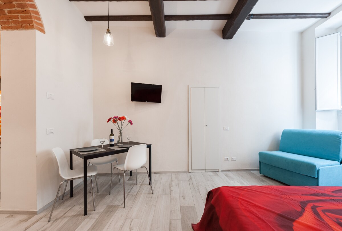 Quite and luminous studio to sleep 2, located on the left side of the river Arno, only at 30 yards/meters from Ponte Vecchio. The studio is on the third floor with lift and has a living room with parquet floor and a real double sized bed, bathroom with shower and fully equipped kitchenette! the double glaze window is overlooking the main street and the bathroom window has mosquito net , it is also provided of air conditioning/heating, Wi-Fi connection and tv wall mount for all your conforts