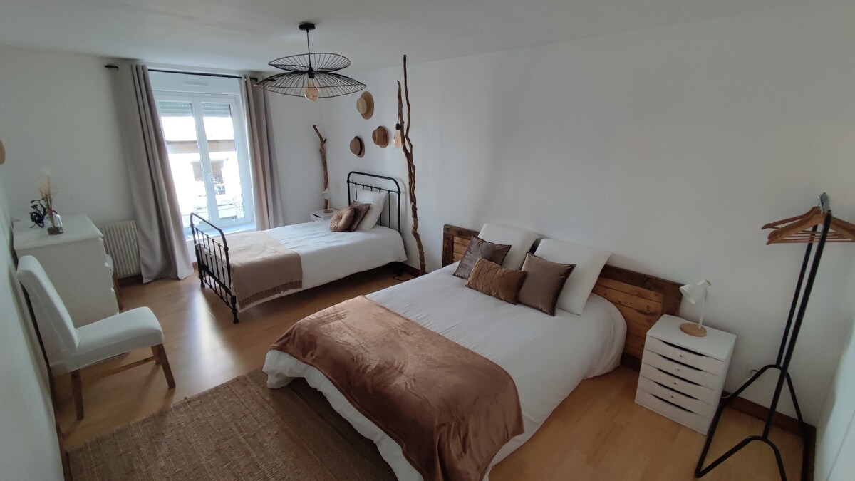 Теплая квартира рядом с магазинами и в 10 минутах ходьбы от гиперцентра. Полностью оборудованная и полностью отремонтированная квартира T2 площадью около 50 кв. м. максимальная вместимость: 4 взрослых оборудованная кухня, микроволновая печь, духовка, индукционная варочная панель, сенсо-машина, душевая комната с сушилкой для полотенец. спальня: спальня, двуспальная кровать 140 см. Гостиная с дополнительной кроватью (диван-кровать 140 см) для 2 взрослых. небольшой дополнительный по запросу погреб заперт, идеально подходит для хранения велосипедов во время вашего пребывания.