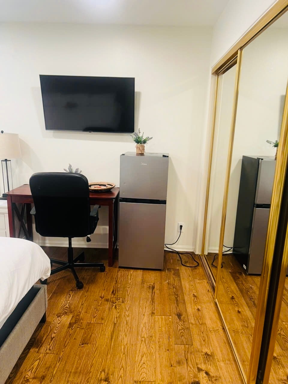 Одна отдельная комната и отдельная ванная комната, доступная нашим гостям Airbnb, уютным и комфортным способом, чтобы сделать ваше пребывание максимально расслабляющим и легким. В номере есть телевизор Smart TV, небольшой холодильник, микроволновая печь, кофеварка Keurig, кондиционер, потолочный вентилятор , рабочая зона офиса и Wi-Fi. Вода, кофе, чай предоставляются для вашего удобства.