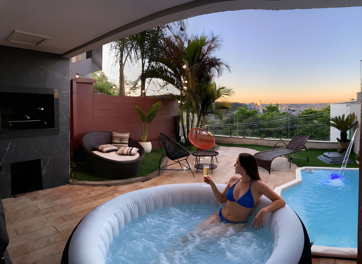 Лофт с прекрасным видом на город, с собственным бассейном и собственным джакузи с подогревом, барбекю, бильярдным столом, двуспальной кроватью и диваном-кроватью. Крытый гараж на территории. Посторонним вход запрещен. Банное полотенце не предоставляется Цена для пары, см. дополнительную цену для большего количества людей. Доступ независимый, что гарантирует полную конфиденциальность гостей. Верхняя часть жилая, но нет совместного использования помещений.