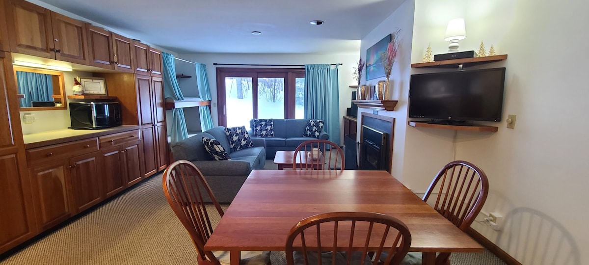 Этот очаровательный кондоминиум у лыжных склонов идеально подходит для семьи из четырех человек, желающих насладиться всем, что может предложить Шугарлоф. Сделайте это место идеальной базой для вашего отпуска, удобно расположенной всего в нескольких минутах ходьбы от подъемника, где начинается ваше лыжное приключение. Квартира чистая и ухоженная, с одной спальней, выдвижной кроватью размера Queen size, гостиной с газовым камином, ванной комнатой и полностью оборудованной кухней. Прачечная на территории и бесплатная парковка!