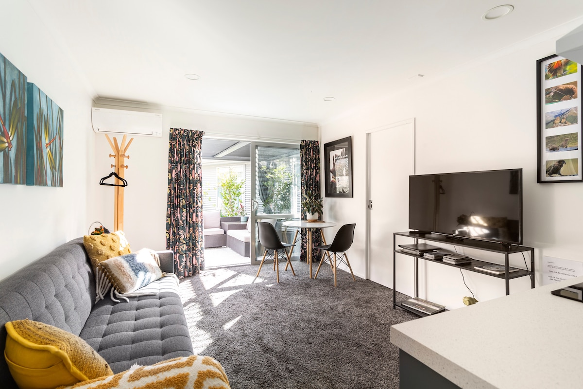 Cozy one bedroom unit with private courtyard located in the new Hanley's Farm subdivision. A 5min drive to the base of Remarkables Ski Field, 10min drive to the airport, Remarkables and 5 Mile shopping centers and 25min to the heart of Queenstown. Perfect base and size to explore for two adults but has a pull out couch for a third guest or child. There is the Farmhouse Cafe and playground at the end of the street. Disney, Prime and Netflix included.