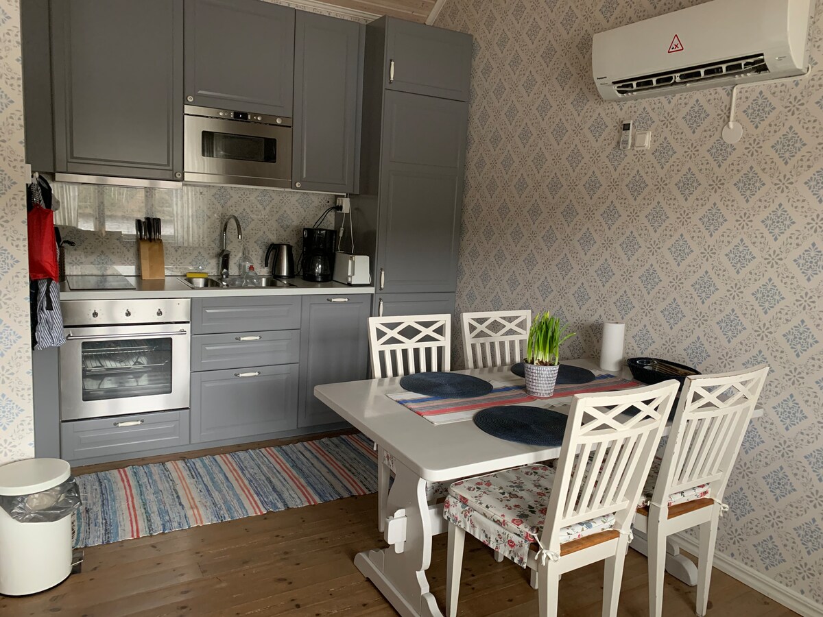 Отдохните всей семьей или с друзьями в этом тихом гостевом доме, расположенном на нашей территории. Близко к природе с дикими животными за углом. Рядом с морем, озером и магазинами. Остановитесь в сельской местности, но в нескольких шагах от центра города. 25 минут от Гётеборга! Просыпайтесь с утренним солнцем, выпейте кофе на террасе и наслаждайтесь пением птиц. Совершите прогулку по лесу, где много ягод, грибов и уютных тропинок. Насладитесь ужином на закате! Возможность заряжать электромобиль в ночное время по цене 100 шведских крон.