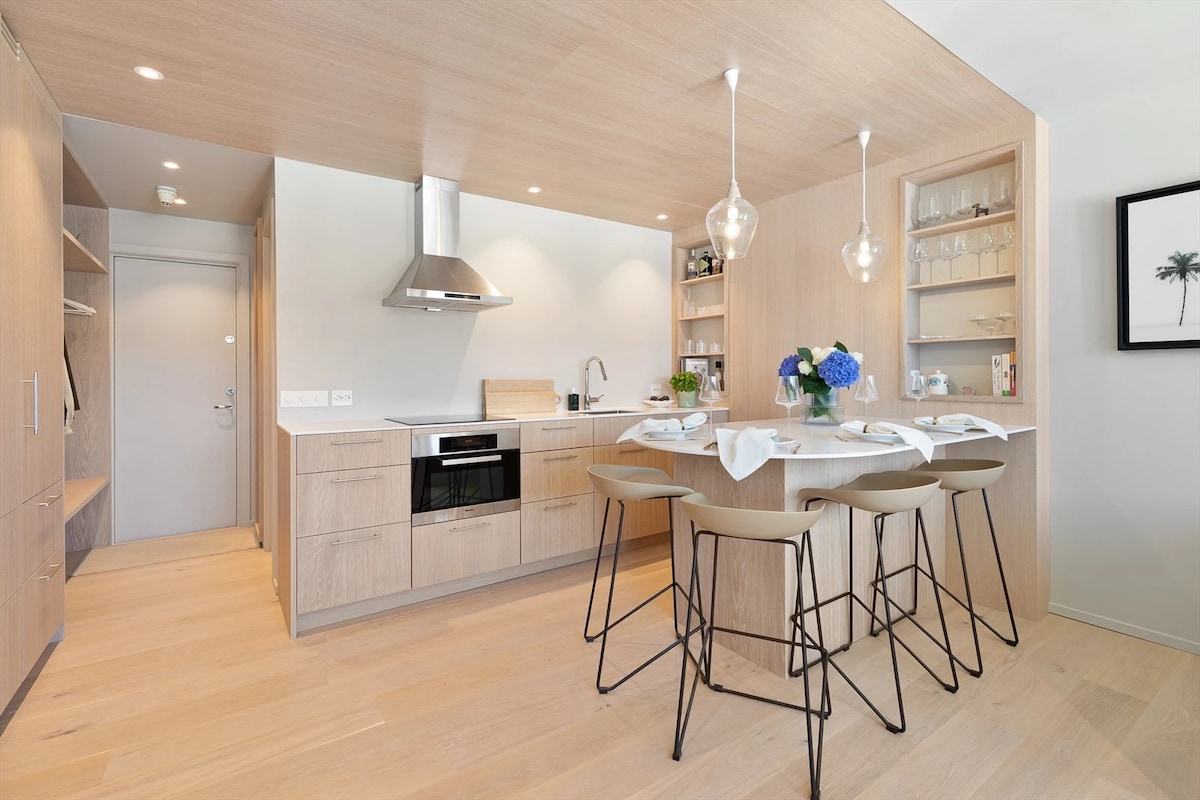 Flott fjordutsikt i elegant sentrumsområde.
