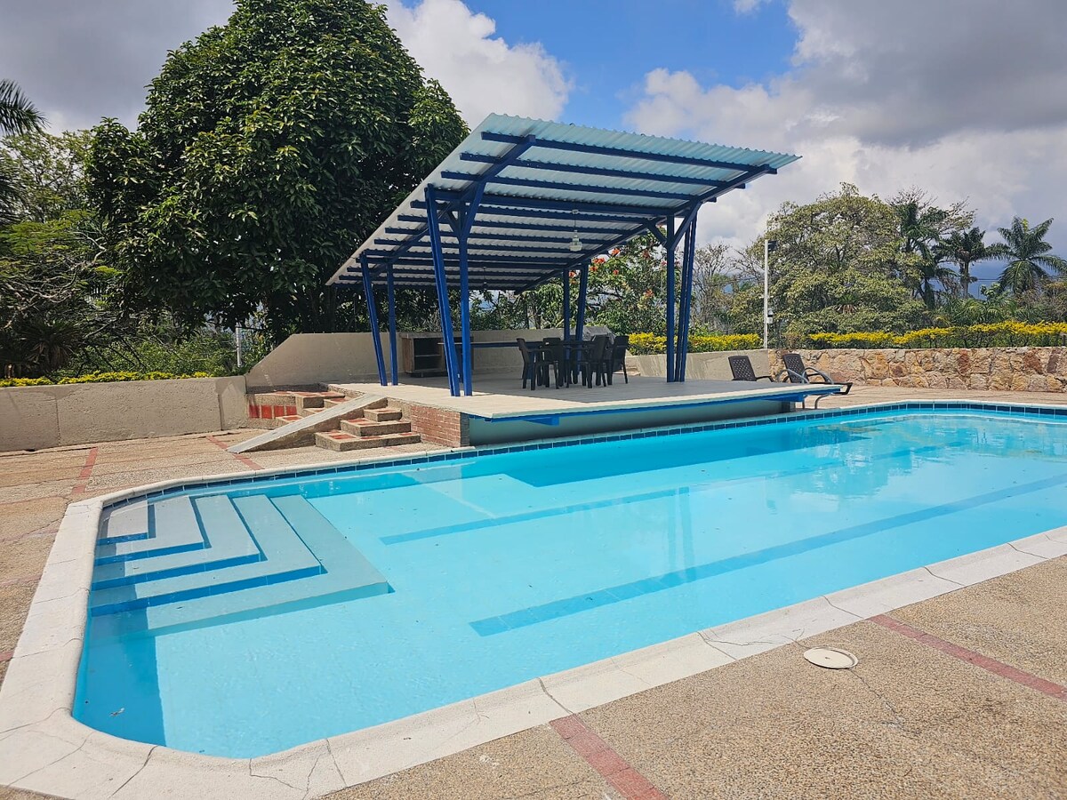Возьмите всю семью в это фантастическое поместье, в котором есть бассейн, джакузи и зона для барбекю. В поместье 4 спальни, 4 ванные комнаты, 3 террасы, 2 комнаты и полностью оборудованная кухня с холодильником, духовкой, фритюрницей, блендером, овощной мельницей, сэндвич-машиной и т. д. Рядом с фермой есть магазины, продажа продуктов питания и фастфуда, автоматические банкоматы и банк Bancolombia. Жилье адаптировано для людей с ограниченной мобильностью.