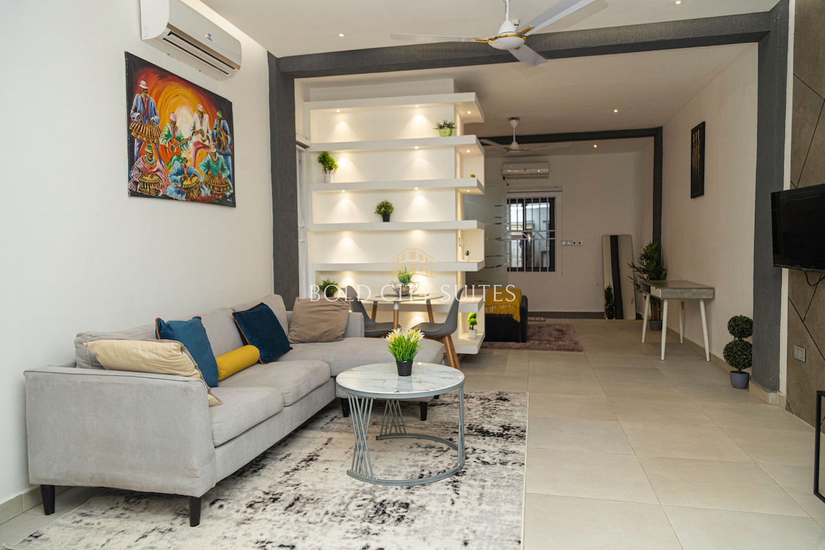 Enjoy your stay in this elegantly furnished 1-bedroom apartment in North Legon, Accra. The apartment is close to The Palace Mall, Legon Botanical Gardens, and several restaurants and eateries, including KFC and Papa's Pizza.