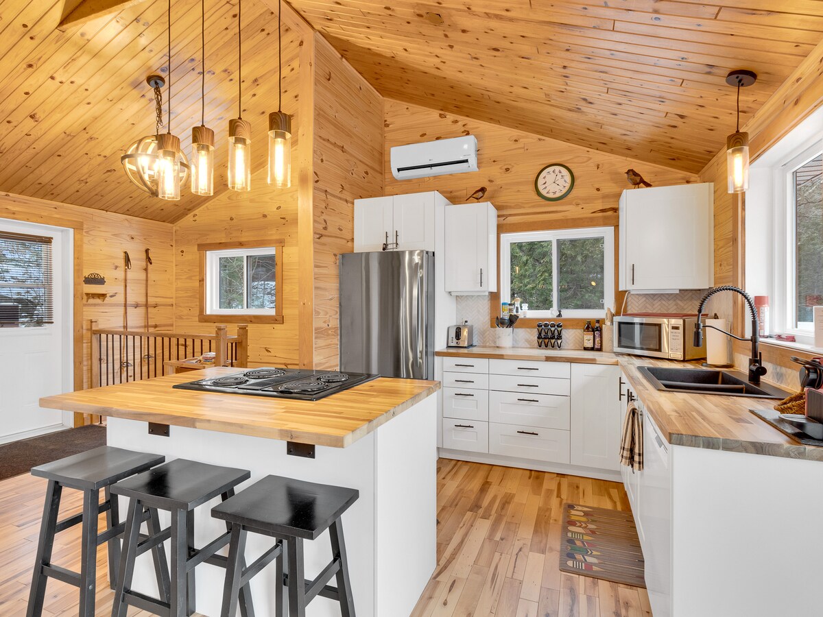 Добро пожаловать в La Khabine! В этой уютной современной хижине есть все, что нужно для отдыха и общения с природой. Насладитесь бокалом вина под звуки треск костра в дровяном камине. Взгляните на лес через окружающие окна от пола до потолка. Отдохните в частной сауне на открытом воздухе с кедровыми бочками. Натуральные средства по уходу за собой, дрова, мыло для стирки и высокоскоростной Wi-Fi предоставляются бесплатно. Мы надеемся, что вам понравится наша маленькая хижина с окнами так же, как нам :)