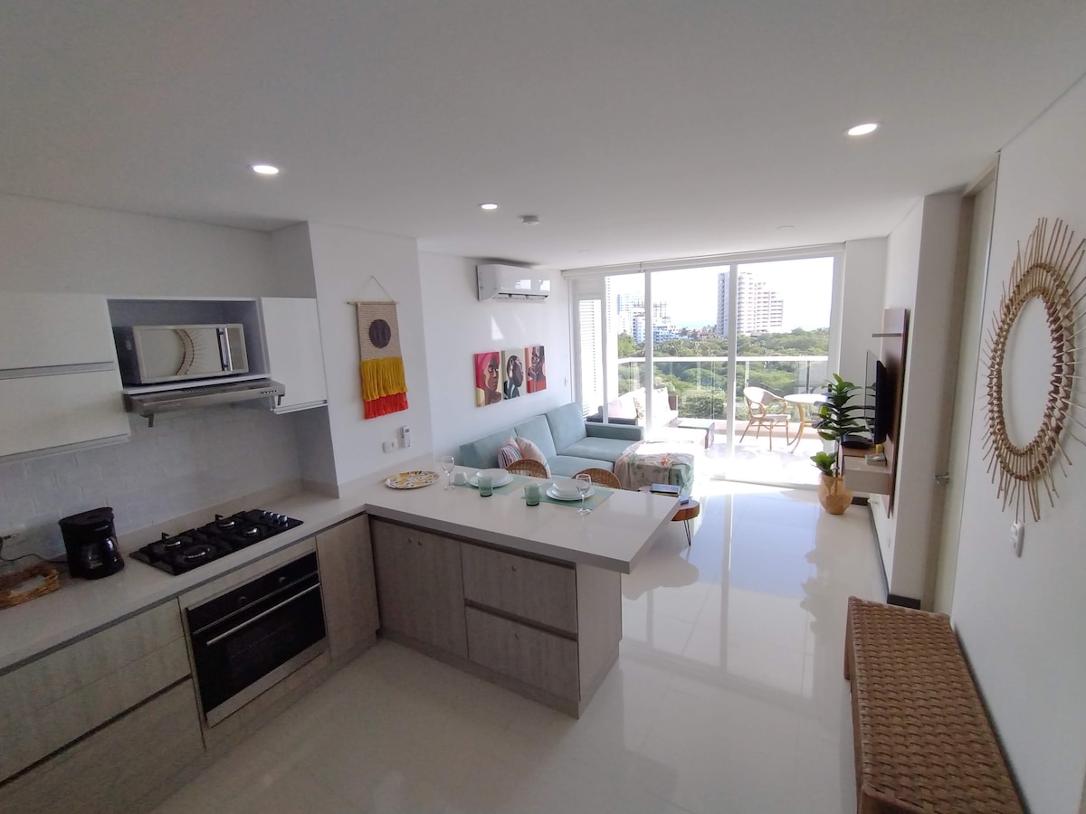 Познакомьтесь с Rodadero Sur в двух шагах от пляжа! Вид на океан и Сьерра-Неваду, идеально подходит для отдыха. Оптоволоконный Wi-Fi и полностью оборудованная квартира. 🌴 Включает 4 стула и переносной холодильник для пляжа. • Мини-маркет на первом этаже. 📍 Тихий жилой район, 14 минут до аэропорта. ✨ Идеально подходит для семей или пар, которые ищут комфорт и хорошее расположение. 🌴 В Санта-Марте теплый климат, поэтому водонагревателя нет; душ комнатной температуры.