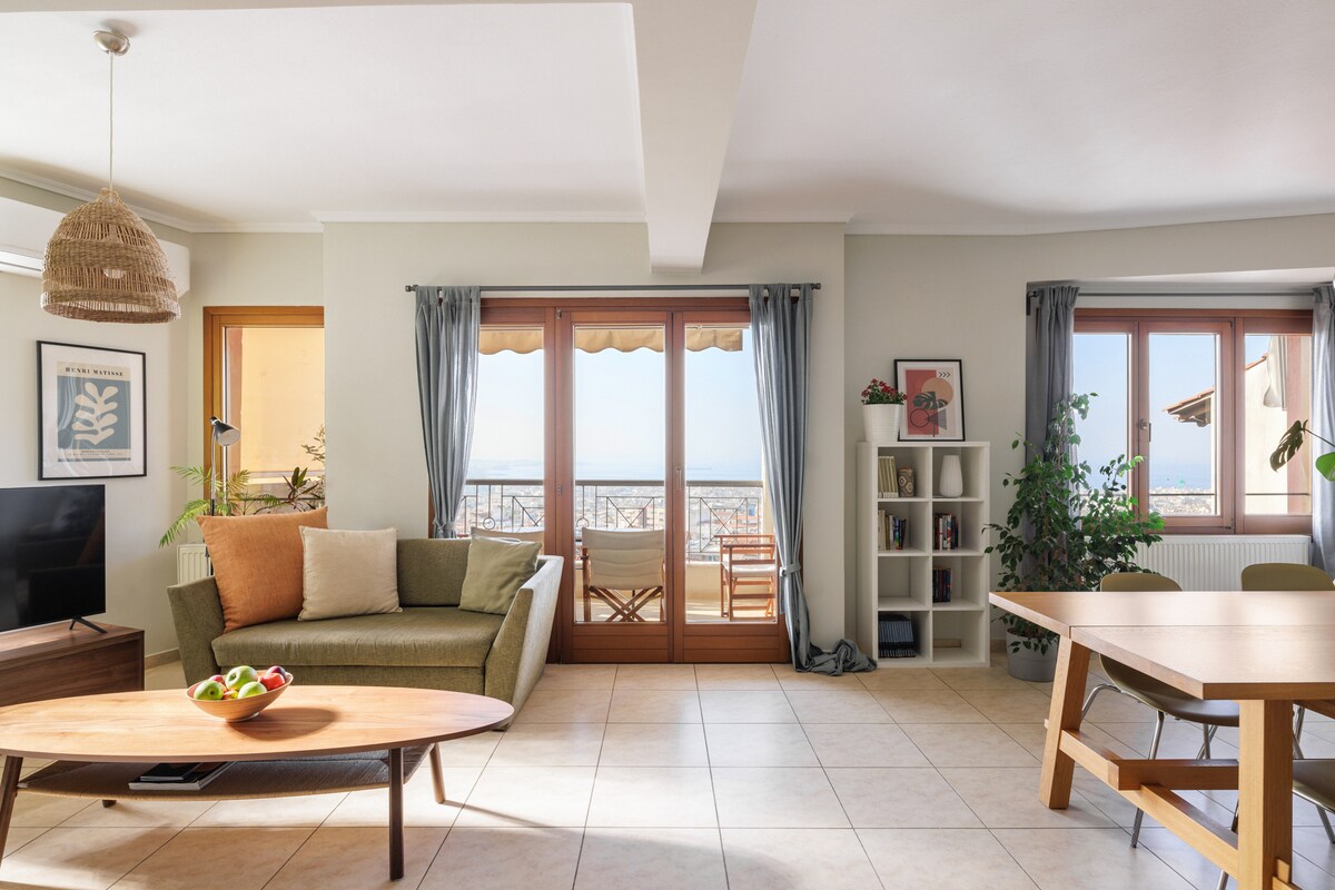 Квартира Thea расположена в отдельно стоящем доме в живописном Верхнем городе в Салониках, с панорамным видом на город и море и в 15 минутах ходьбы от центра города. Это просторная, светлая и комфортабельная квартира площадью 110 кв. м, отремонтированная в 2020 году, с современным и теплым декором.
