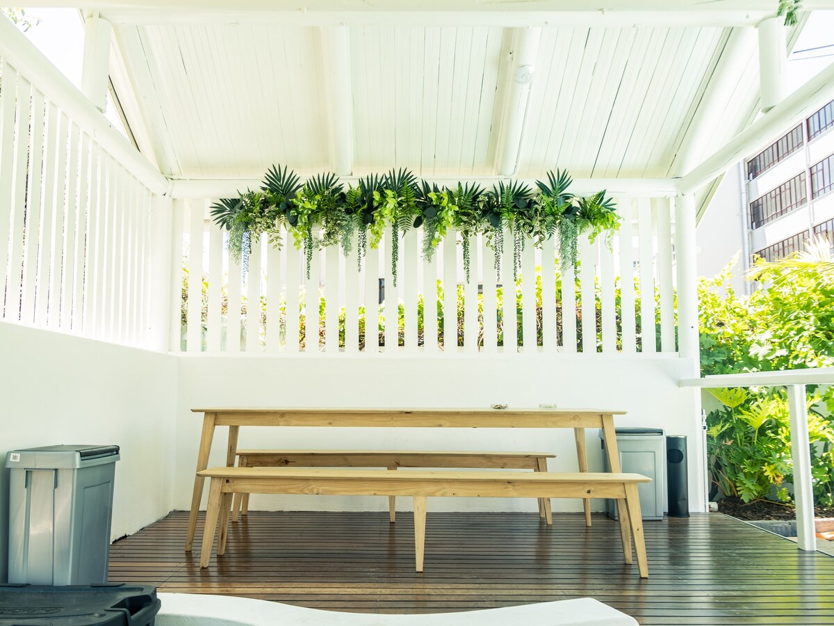 Недавно отремонтированный (отсюда и новое объявление) частный люкс в небольшом бутик-отеле. Отель расположен в 120-летнем доме, который был отреставрирован 22 октября. Ваше тщательно подобранное пространство - единственное с собственной кухней, гостиной, баром, открытым патио и отдельным входом. В нашем бутик-отеле есть бассейн, сауна, общие зоны и вид на Столовую гору. В нескольких минутах ходьбы от модных ресторанов, баров и магазинов.