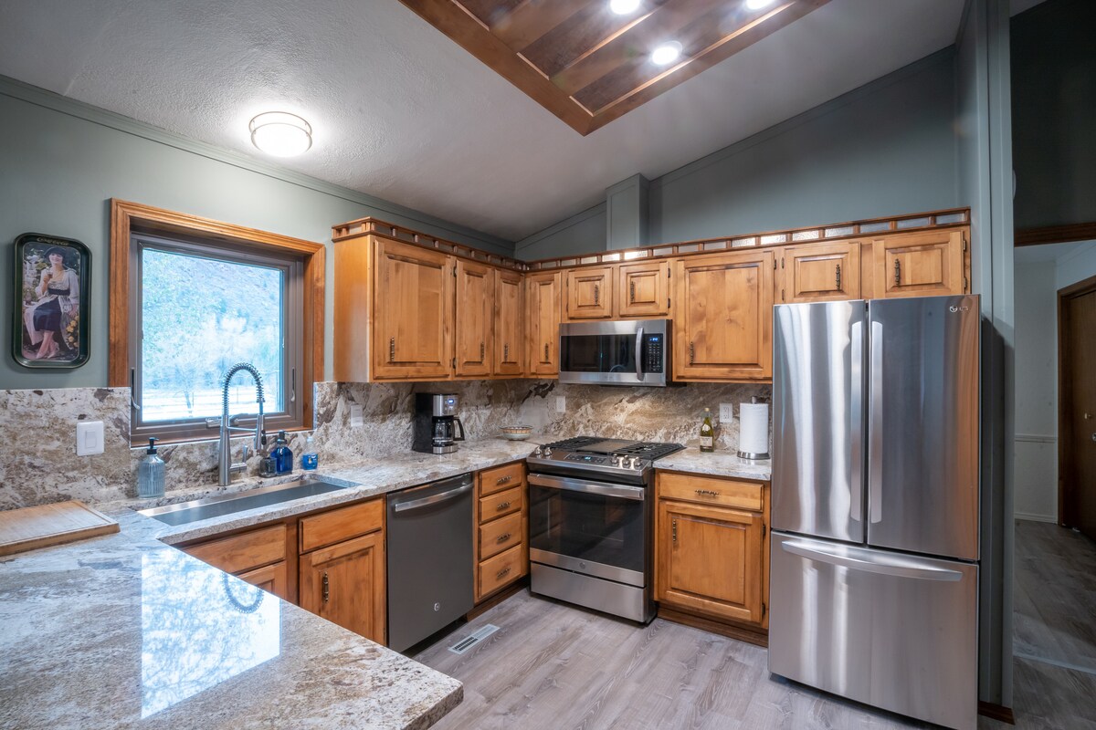 Большой недавно отремонтированный дом на 1,2 акра в величественном Каньон-Крик. В нескольких минутах езды, в 5 милях от Гленвуд-Спрингс и всего, что в нем есть горячие источники, парк приключений и 20 минут езды до горнолыжного курорта Sunlight. Доступ к рыбалке на реке Колорадо прямо через шоссе. В этом районе много пешеходных маршрутов и лошадей, включая знаменитую гору Шторм-Кинг. Жилье предлагает два пастбища и огороженный задний двор для ваших собак. Большая терраса с гидромассажной ванной, газовым грилем и костровищем.