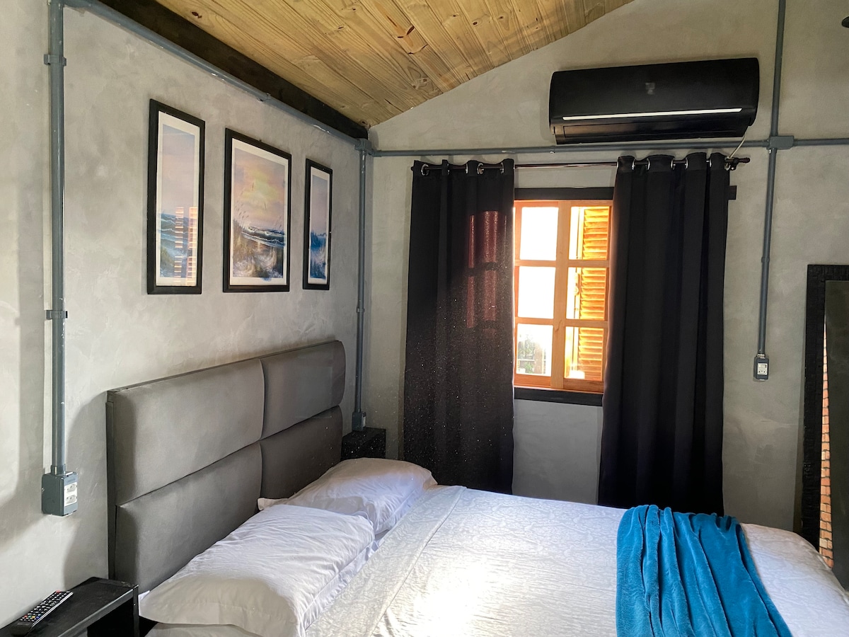 Лофт — студия с домашними удобствами, похожая на гостиничный номер. Постельное белье, стол и ванна доступны. Полностью оборудованная кухня с индукционной плитой, фритюрницей, микроволновой печью, сэндвичем, мини-баром, сахаром и т. д. Местный с горячим и холодным кондиционером, телевизор с основными приложениями. Сиденье для чтения. Придомовая территория со стиральной машиной и барбекю, а также парковочное место. Мы принимаем домашних животных по запросу, правилам и сборам.