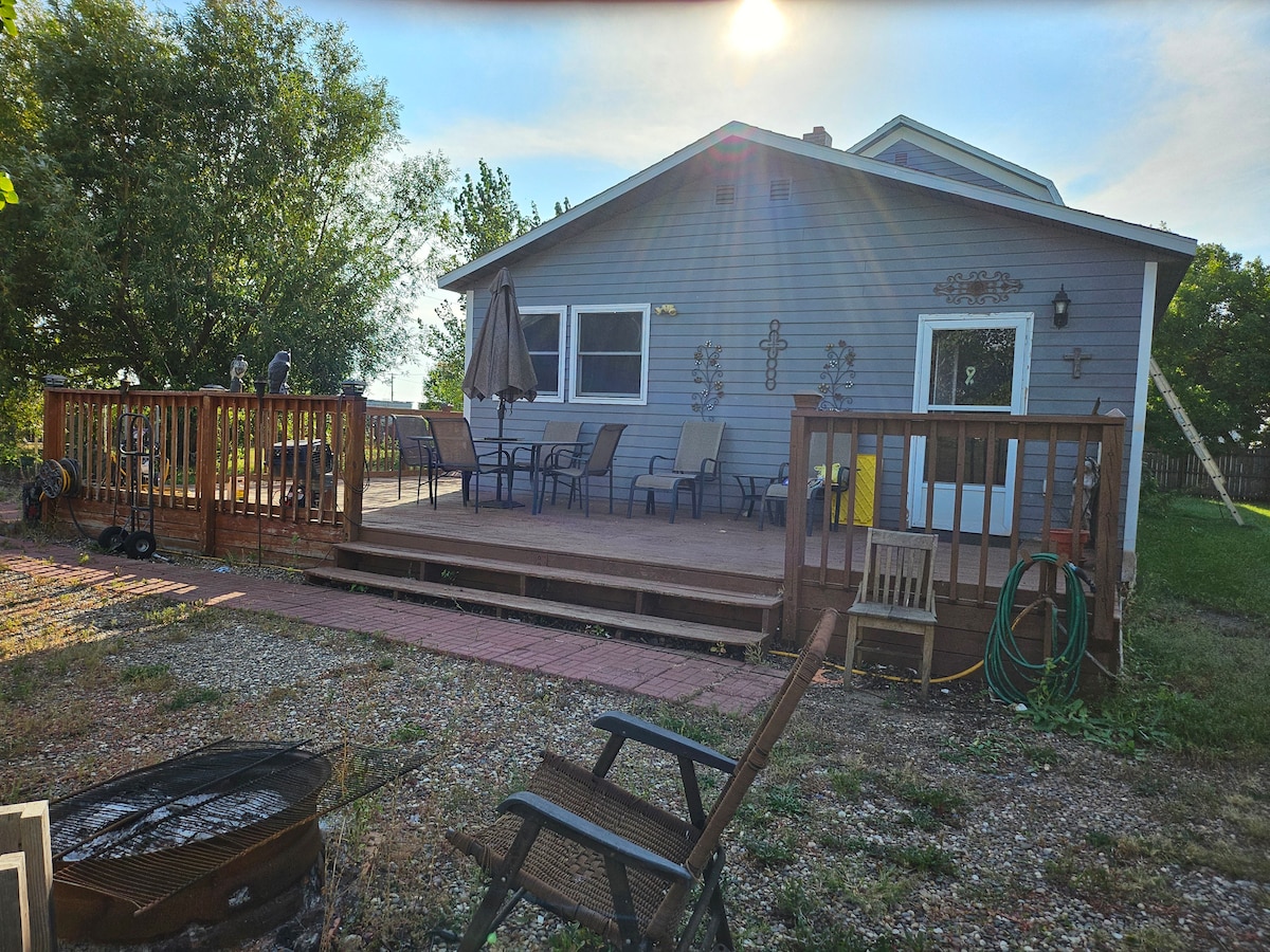 Забудьте о заботах в этом недавно отремонтированном уединенном жилье. Всего в десяти минутах от Walmart, но вы чувствуете, что находитесь в открытой сельской местности. 4 просторные спальни и 3 просторные ванные комнаты. На полностью огороженном заднем дворе есть терраса с обеденной зоной, качели на дереве и костровище. Он находится всего в двух минутах езды по шоссе от красивой системы Bison Trail в Майноте. Полноразмерная стиральная и сушильная машины. Курение запрещено. Нельзя с питомцами.