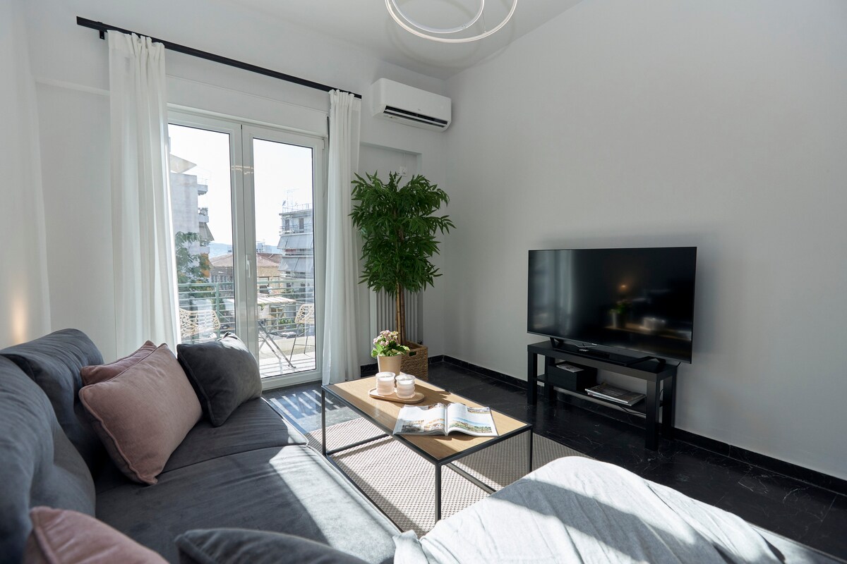 Насладитесь стильным отдыхом в одном из самых оживленных районов Афин. Наша полностью отремонтированная квартира с одной (1) спальней расположена на 4-м этаже жилого зала с домашней атмосферой, видом на Акрополь из патио и легким доступом к самым известным достопримечательностям города. В солнечной квартире есть все необходимое для длительного проживания, а специальный матрас является изюминкой для комфортного сна.