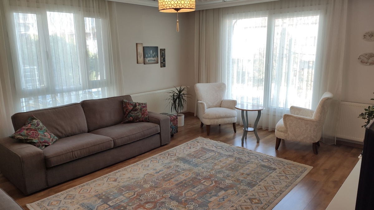 Недавно оформленная квартира с 3 спальнями в тишине и покое, недалеко от центра города и торгового центра Optimum. Это отдельный средний этаж отдельной трехэтажной виллы в тихом районе вилл. Перед зданием есть парковка, проблем с дорожным движением нет. - 50-дюймовый телевизор - Netflix. - Детское кресло с массажем. - Три стеклянных окна, аэропорт 5 км, кольцевая развязка 600 м Торговый центр Optimum - 1,5 км. Избан-Эсбаш (метро) - 1,5 км. Ярмарка Измир - 4 км. *Alaçatı/Çeşme: 80 км. *Эфес / Сельчук: 70 км. *Gümüldür: 40 км.