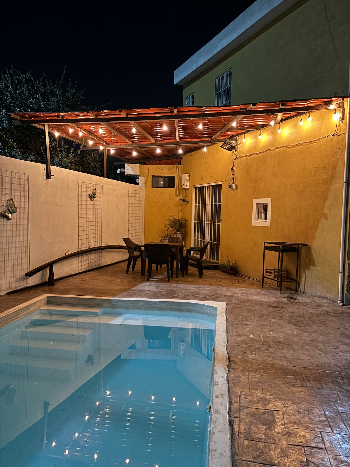 Соберите семью или друзей и насладитесь 2 или более днями отдыха в единственном бассейне в этом районе с теплой водой всего в 35 минутах езды от Монтеррея, НЛ. У нас есть квартира на верхнем этаже, лофт, открытое пространство с гостиной, столовой, мини-кухней, ванной комнатой, душем и 2 кроватями размера King size, оборудованная мини-сплитом с охлаждением/обогревом. В том числе: Гриль Терраса. Столы и стулья Шезлонги Детские игры Большой холодильник Abanicos Wi-Fi. Фоновый звук по всему дому, просто подключитесь через Bluetooth