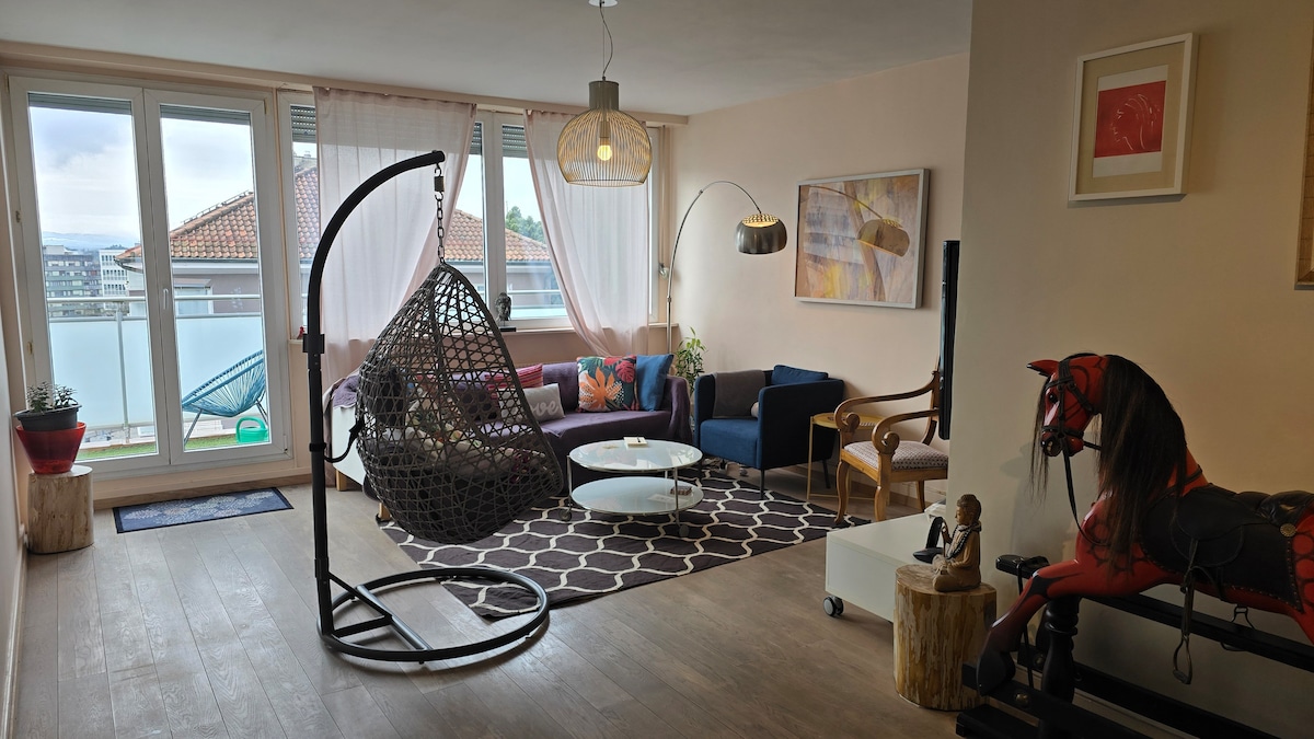 Насладитесь стильными впечатлениями в этой квартире, расположенной в центре города, в прекрасном Шампеле, Женева. Элегантная меблировка и большое солнечное пространство на открытом воздухе для отдыха. В нескольких минутах ходьбы от продуктовых магазинов, кафе, ресторанов и огромного парка. Две минуты пешком до остановки общественного транспорта, чтобы добраться до аэропорта/главного железнодорожного вокзала/озера/центра города. 17 минут до главного железнодорожного вокзала Женевы (Cornavin) и примерно 30 минут до аэропорта Женевы. 10 минут до фонтана Jet d'Eau. 1,5 км от центра города. Очень близко к HUG и Clinique la Colline, CMU.