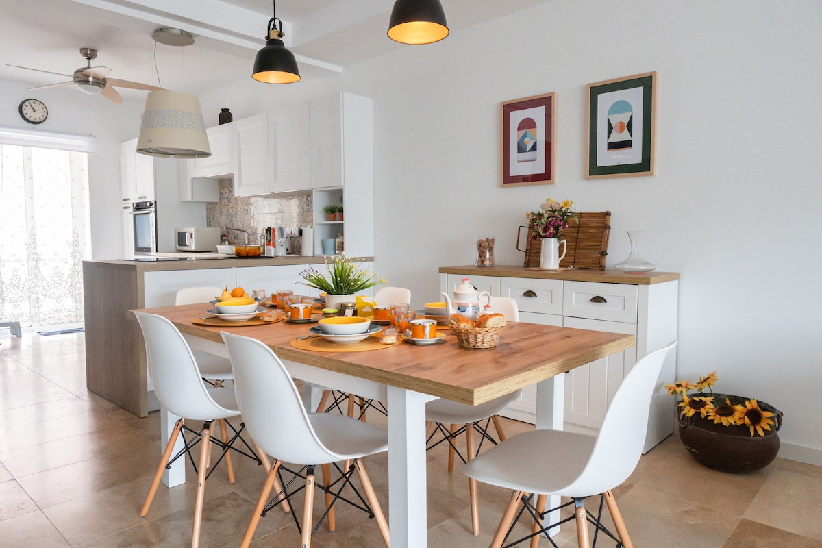 С Средиземным морем у порога мы предлагаем вам идеальный хюгге - уют и довольство - побег из мирского в красивых пейзажах. Набережная, со вкусом оформленные 2 спальни, роскошный душ, полностью оборудованная кухня и гостиная/столовая с видом на море. Полностью меблирована, высококачественное постельное белье и открытое пространство. Отличное расположение с ресторанами, кафе и супермаркетами в пешей доступности и парком прямо напротив. Первый этаж, отдельный вход, до него легко добраться. Бесплатная парковка.