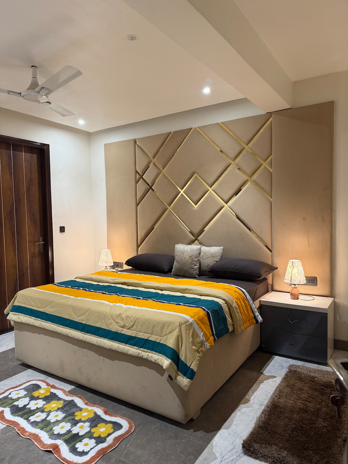 Cozy budget stay with all amenities- bathroom and kitchenette (microwave, cook-top, refrigerator, RO, utensils etc). Unique jazzy musical design, instruments and TV(netflix,prime,hotstar,zee,sony) available for recreation. Central location near sector 18, DLF mall of India, metro train at walking distance, wonderful location for foodies as amazing BP's street food and the famous Tea Shop and resturants within 500 meters. Night walks with ice cream stalls at 15 meters. Free parking right outside.