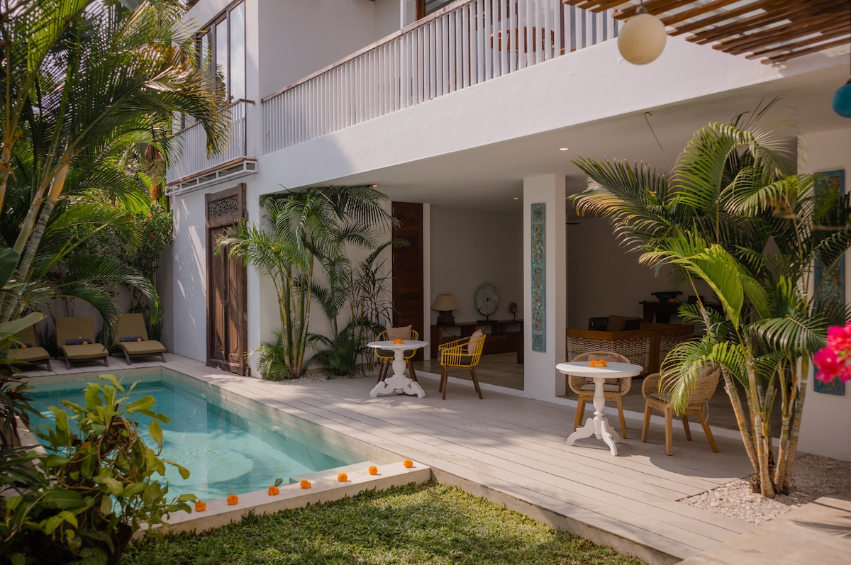 ВЕСЬ ЧАСТНЫЙ ДОМ с частным бассейном, 2 спокойными и просторными люксами, окруженными пышными зелеными рисовыми полями и видом на джунгли. Всего в 3 минутах от центра Убуда, но вы чувствуете себя как в километрах. Мир вдали от суеты повседневной жизни вдали от суеты повседневной жизни. ПОЖАЛУЙСТА, ИМЕЙТЕ В ВИДУ: до него можно добраться за 15 минут пешком или 3 минуты езды на мотоцикле от центра Убуда (ПОСЛЕДНЯЯ ЧАСТЬ ДОРОЖКИ ДОСТУПНА ТОЛЬКО ПЕШКОМ или МОТОЦИКЛОМ).