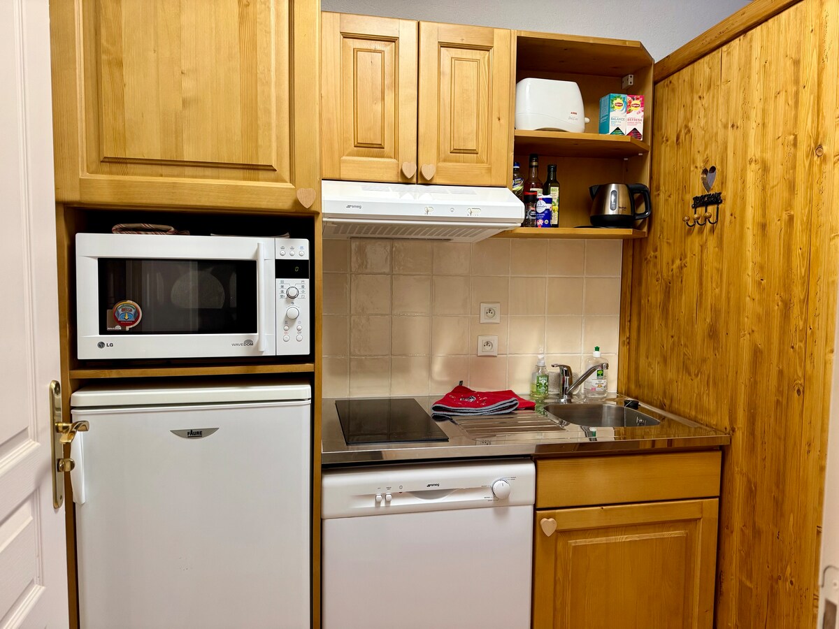 Отдельная студия площадью 26 м2 с отдельной спальной зоной в отдельном доме с террасой, обращенной на юг, на краю леса. Кухня и пол были полностью отремонтированы в апреле 2023 года. Для 2 человек полностью оборудовано. (140 кв. футов, стиральная машина, посудомоечная машина, холодильник с морозильной камерой, микроволновая печь, индукционная плита, Nespresso, пылесос Dyson, тостер, чайник, телевизор, Wi-Fi) 300 метров от велосипедной дорожки, 2 км от озера Анси, 800 метров от базы парапланеризма и центра деревни