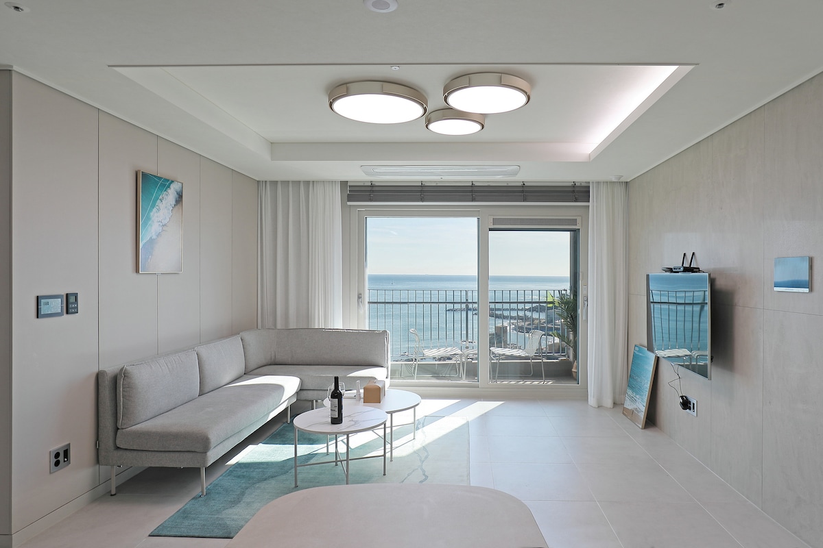 Ocean view with the best beauty in Korea !!! You can enjoy sunrise and sunset at the same time, and the clear air of your heart, the sound of the waves crashing on the rocks, the sea shining in the moonlight, the floating boats at night. Also, You can enjoy spa in the bathtub reminiscent of a pool villa, and the interior space made of hotel-grade materials. 본 숙소는 미스터멘션 특례를 적용받아 내국인 공유숙박 합법 업체로 등록되어 운영되고 있습니다