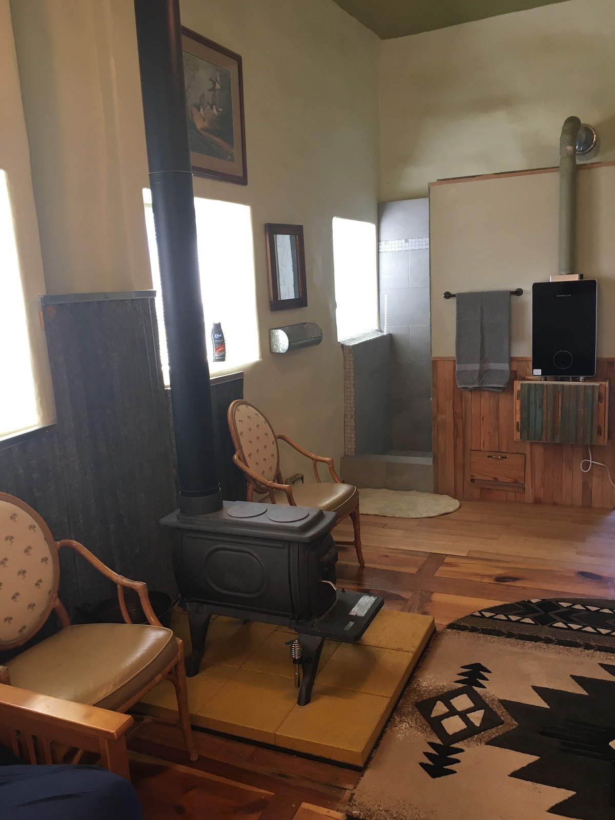 Апартаменты-студио Pinon расположены вдоль каньона Медвежий ручей на высоте 4800 футов. Наше юго-западное расположение Нью-Мексико, с его почти идеальной погодой круглый год трудно победить! В среднем 280+ дней солнечного света, потрясающее голубое небо и 7"-13" дождя ежегодно обеспечивают более мягкое лето и зимнюю погоду, о которой люди с севера мечтают во время уборки снега! Pinon Log Cabin - это наша версия комфортабельной, деревенской квартиры студийного типа, идеально подходящей для одного или двух знакомых гостей. Этот маленький домик площадью примерно 430 квадратных футов отличается простотой. Неожиданная красота спрятана вдоль долины, где меандрирует Медвежий залив. Расположенный в конце хорошо ухоженной 4-мильной грунтовой дороги, вы найдете наши 360 акров на юго-западе Нью-Мексико в окружении древнего хлопкового дерева, пинона и сикамора. (GPS: 32.969224, -108.525218). Этот «конец дороги» кабины наряду с нашими 4 другими деревенскими свойствами, удовлетворит вашу потребность отсоединить, избежать холода, толпы, стресса. Причудливая деревня Гила находится в 10 минутах езды и предлагает медицинскую клинику, библиотеку, почтовое отделение, художественную галерею и действительно является "воротами в лес Гила". Все еще удобно совершать крупные покупки в Силвер-Сити, штат Нью-Мексико, и в 35 минутах езды от отеля вы сможете насладиться различными магазинами, антикварными магазинами и богемными, серебряными, бирюзовыми ювелирными изделиями собственного производства. Вы найдете длинный список достопримечательностей и достопримечательностей: дневные или вечерние изысканные блюда или фаст-фуд; мультикультурная кухня или эклектичный фанк, Университет Западного Нью-Мексико, наш местный фермерский рынок, театр, ежегодный фестиваль Fiesta, пивоварня и ресторан Little Toad Creek, художественные галереи или антикварные магазины (проверьте хребет Манзанита)!! Однодневные поездки в большие города, такие как Тусон AZ, Las Cruces NM, и Эль-Пасо TX легко сделать. Полностью меблированная, возможно, наша любимая, кухня оборудована итальянскими каменными столешницами, плитой с 4 конфорками, микроволновой печью, двумя холодильниками квартирного размера, кофеваркой, тостером, микроволновой печью, тостерной печью, кастрюлей/медленной плитой, блендером, посудой, столовыми приборами, кастрюлями, посудой и обеденным баром с табуретами, где можно насладиться завтраком, обедом или ужином. Для вашего удобства, кладовая поставляется с бесплатными предметами, такими как специи для гурманов, приправы, небольшое количество сахара, кофейные сливки, чай, кулинарное масло и спрей, макароны, рис, попкорн для микроволновой печи, куски консервированного мяса, фольга. В нескольких милях от вашего домика вы найдете наш местный магазин/автозаправочную станцию со свежими молочными продуктами, яйцами, мороженым, хлебом, консервированными фруктами и овощами, замороженным мясом, обеденным мясом, газировкой, закусками - открыт 7 дней в неделю. Качественная двуспальная кровать Queen Bed позволит вам поспать немного дольше, чем обычно, прижавшись к роскошному постельному белью из египетского хлопка. Сияющее напольное отопление сохранит ваши пальцы ног приятными и теплыми по прохладным утрам, и, если вы находитесь здесь в теплые месяцы, вы можете рассчитывать на кондиционер, чтобы держать вас прохладно! Гос