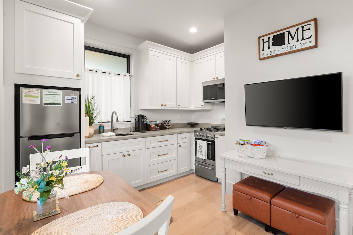 Добро пожаловать в недавно построенный в 2022 году дом AZ GO RENTALS — просторный одноэтажный дом площадью 1500 кв. футов, 3 спальни/2 ванные комнаты. Это совершенно отдельное здание, очень современный дом, который включает в себя гараж на 2 машины и парковку для 2 дополнительных транспортных средств, расположенный на частной территории площадью 1 акр за домом владельца. В вашем распоряжении стильная открытая кухня, освежающий душ, ультракомфортабельные кровати и безупречное жилое пространство. Гости также могут пользоваться кортом для пиклбола (требуется отказ от претензий до прибытия). Лицензия: 21445829.