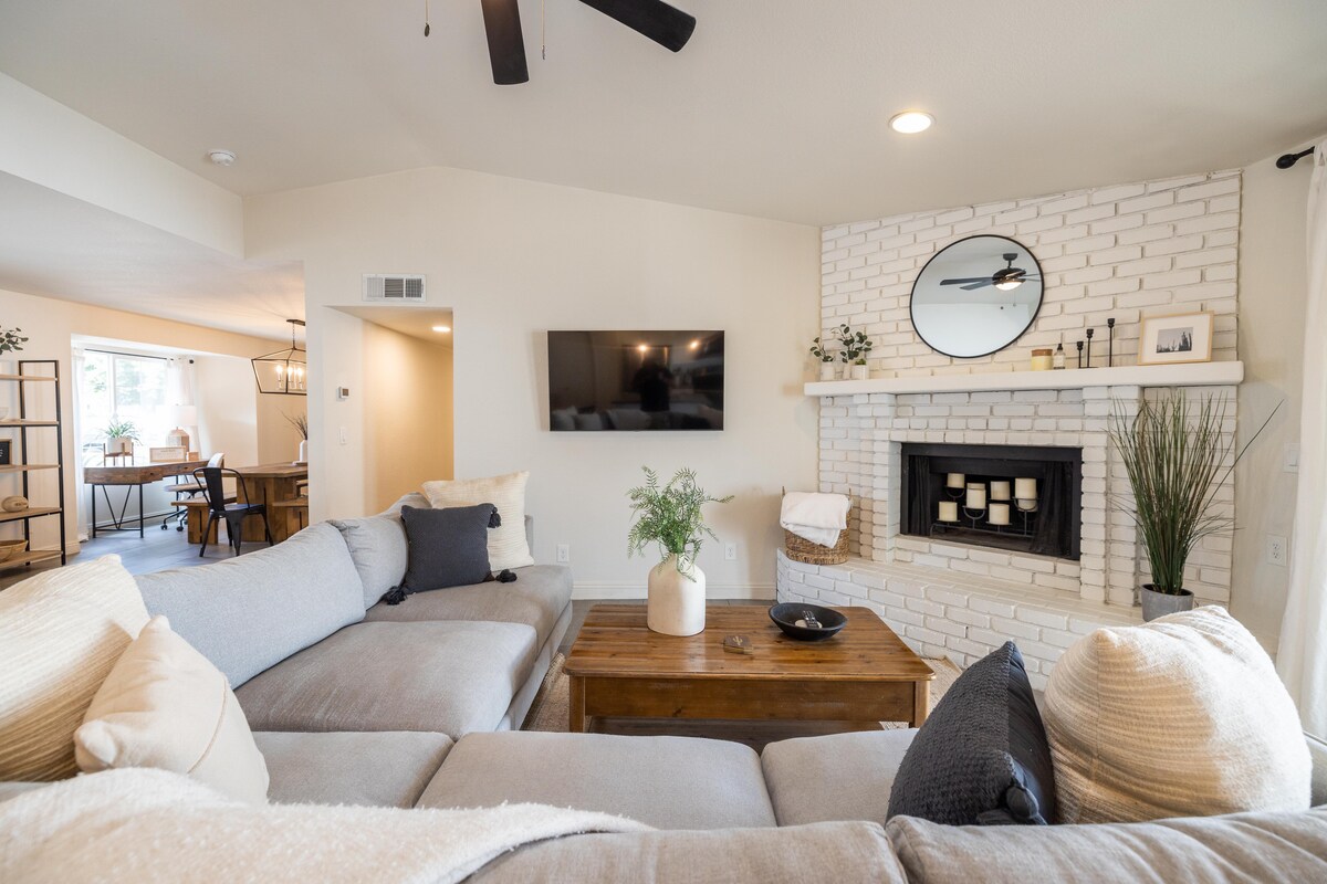 Наслаждайтесь роскошным Airbnb, расположенным в центре города Гилберт - всего в одном квартале к востоку от барбекю Joe 's, Snooze, виски Row Dierk' s Bentley, фермерского рынка Гилберта, театра Hale и многого другого! В этом доме 2 спальни, 2 ванные комнаты и невероятный лофт для размещения в общей сложности 8 человек. Двор идеально подходит для развлечений с газовым камином и невероятным видом на водонапорную башню Гилберта! Перед бронированием не разрешены вечеринки и мероприятия без одобрения хозяина + дополнительная плата.