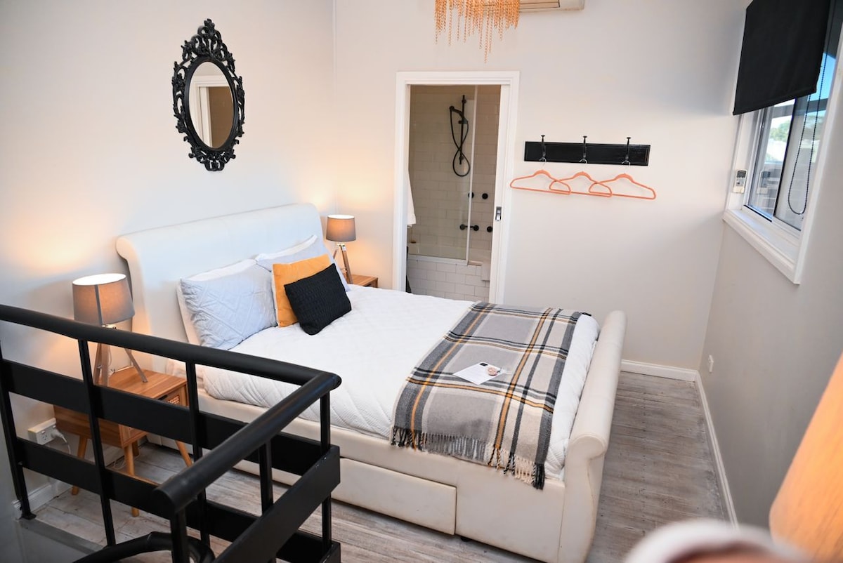 Комфортабельная светлая комната с собственной ванной комнатой. Комната расположена наверху, в безопасном частном жилом районе паба. В комнате есть всё необходимое, включая двуспальную кровать размера Queen size, мини-холодильник, чайник, тостер и телевизор. Отель расположен всего в нескольких минутах ходьбы от улицы Лайгон и рядом с кафе, магазинами и общественным транспортом. Поскольку комната расположена над пабом и на окраине города, ночью может быть слышен шум. Учтите это при бронировании.