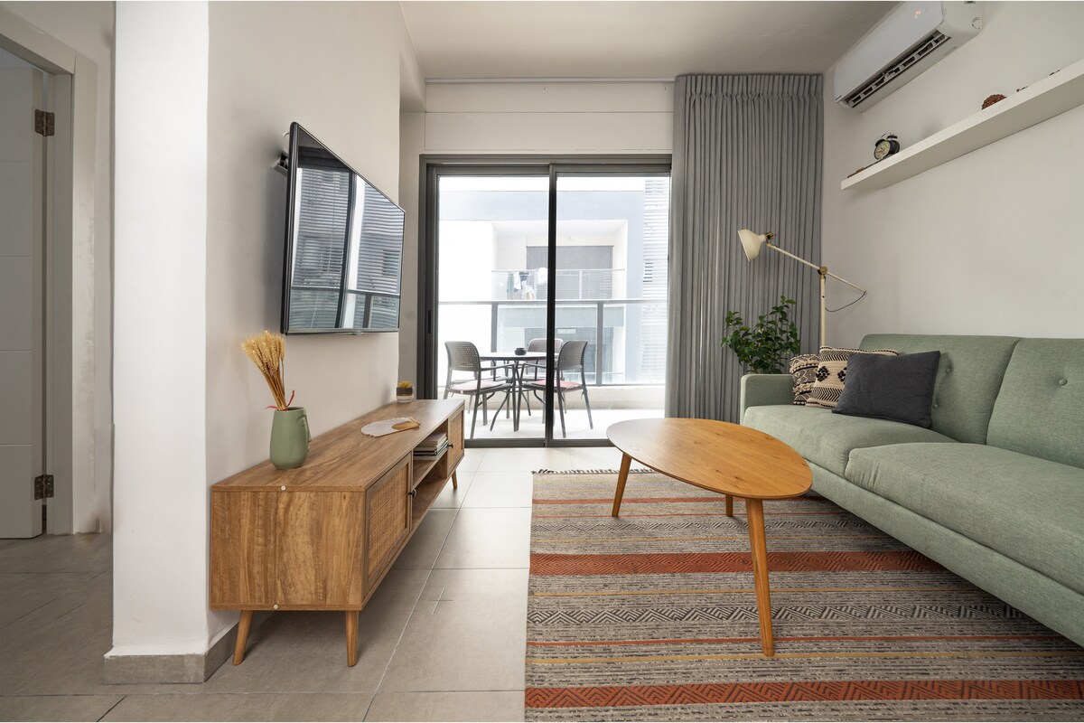 Новая квартира для городского отдыха с качественной отделкой и современным, тихим дизайном в центре жилого района Рамат-Ган. В жилье есть все необходимое на время вашего пребывания. Регулируемая кровать, 3 смарт-телевизора, полностью оборудованная кухня с кофемашиной, микроволновая печь, стиральная и сушильная машина, уютный балкон, чтобы выпить кофе по утрам. Подходит для семей/пар/одиночек. Жилье расположено в центре города, откуда легко добраться до колледжа Рамат-Ган, больницы Тель-Хашомера, национального парка Рамат-Ган (Сафари), торгового и рекреационного центра Merom Neve Park, общественный транспорт доступен большую часть дня. Просторная парковка на улице и близлежащих улицах.