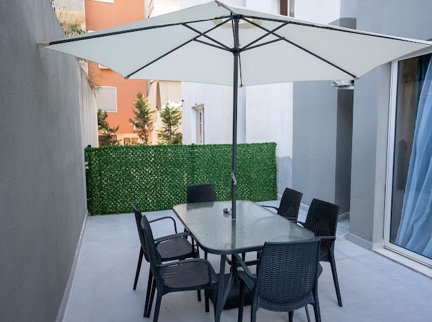 Квартира Klesta сочетает в себе современный дизайн с высочайшим комфортом и находится всего в нескольких шагах от пляжа и оживленного центра Саранды. Вас ждет залитая светом гостиная, качественная мебель и собственный балкон с боковым видом на море. Персональное обслуживание, эксклюзивная конфиденциальность и первоклассная доступность делают ваше пребывание уникальным. Добро пожаловать в квартиру Klesta – ваш стильный дом в Саранде.