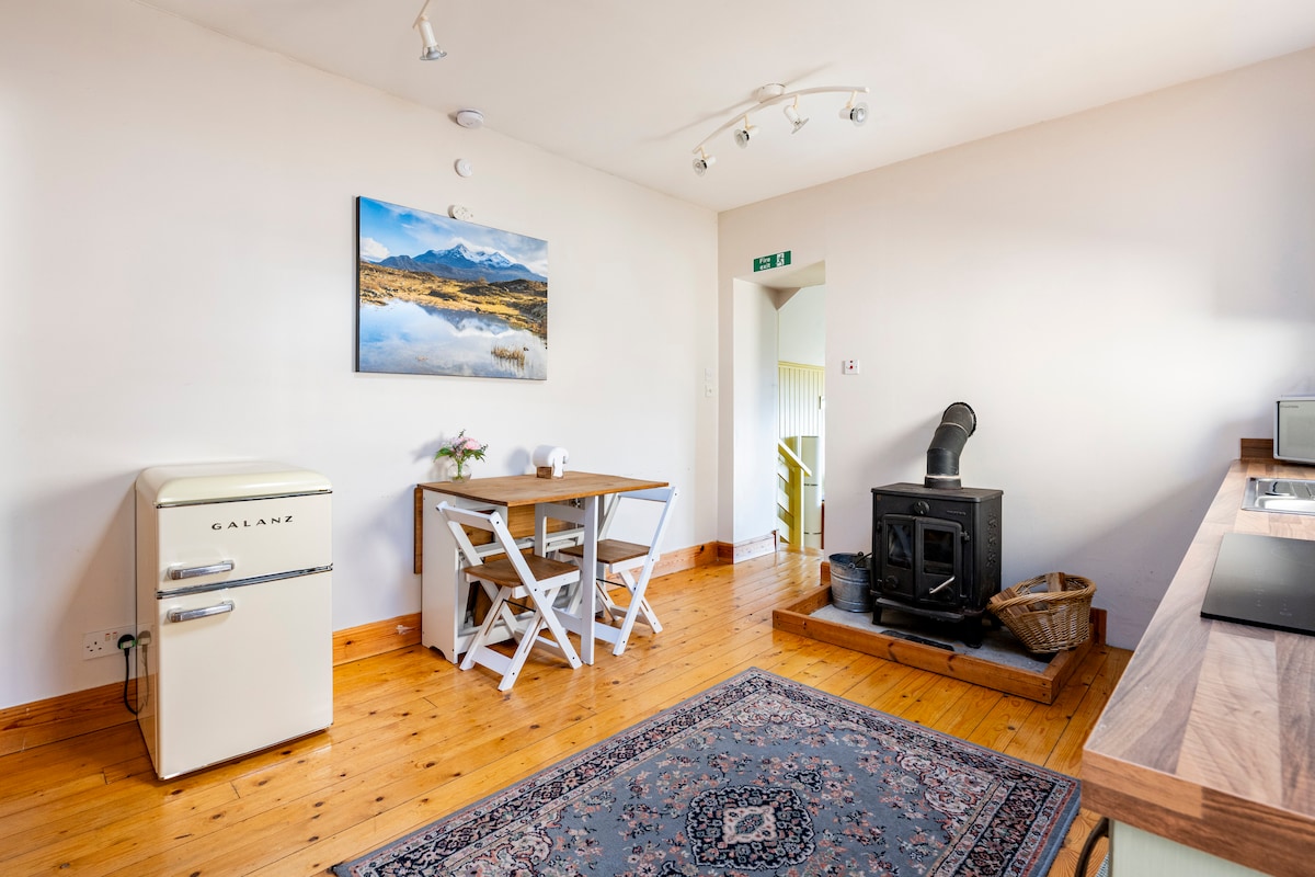 Located rurally, though not isolated, just 11 miles from Oban. The perfect cosy, highland hideaway to relax, recharge & reconnect. Stunning mountain views from upper garden. Perfect for a couple or family due to open-plan design. Fully equipped kitchen, superfast broadband & room darkening blinds in both sleep areas. No cleaning fee added on. Car essential. Free parking to door. Max of 4 persons. No extra persons please. Double bedroom + 2nd king size sleep space on open-plan mezzanine area.