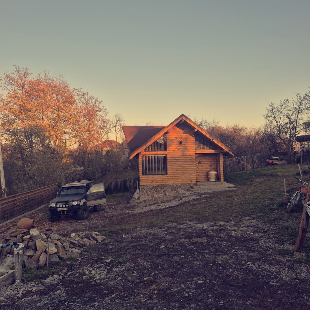 Расположенная в сельской местности, недалеко от национального парка Пьятра Краюлуй, в лесу рядом с озером с рыбой, хижина с ее сказочным очарованием переносит вас в другой мир, вдали от повседневной рутины. Попытка имитировать архаичный образ жизни. Она имеет уникальный дизайн. Автономная и экологичная. Хижина не предназначена для требовательных, это впечатление, а не простое жилье. Без электричества от сети, с фотоэлектрической системой 10 Вт для зарядки телефонов и 2 лампочками для освещения ночью.