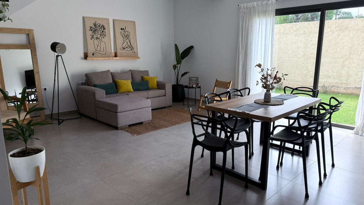 This cozy accommodation in a quiet and accessible neighborhood. Features: WiFi, TV, grill, parking for 2 cars, 3 bedrooms, a dining room for 6, fireplace, equipped kitchen and bathrooms. Patio with bar, grill and lighted pool. Steps away: cafes, restaurants, ice cream parlors, town square and gym. By car: close to Barraca Mall, Dorrego Mall, Chango Más, Av. Aristides, downtown and Chacras de Coria. Unbeatable location with all amenities within reach.