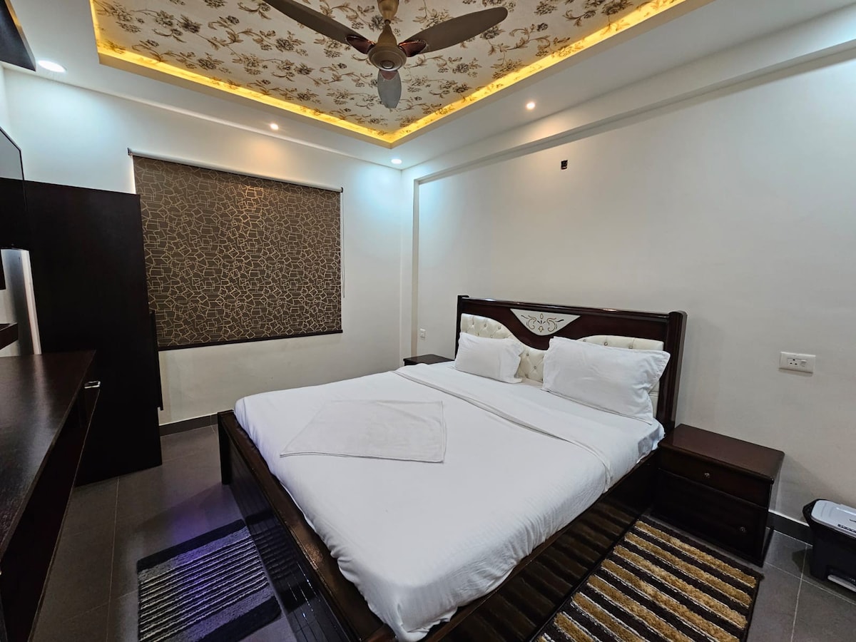 Добро пожаловать в нашу уютную, полностью меблированную квартиру с основными удобствами: кондиционером, телевизором, гейзером и Wi-Fi. Идеально подходит для 4 гостей. К услугам гостей двуспальные кровати размера King size и диван-кровать. Мы предлагаем храмовый даршан, транспорт из аэропорта, парковку и прокат автомобилей. Жилье расположено в 5 км от храма Шри Джаганнатх и в 7 км от железнодорожного вокзала. Предоставляется помощь смотрителя и ежедневная уборка. Круглосуточное резервное питание для предметов первой необходимости. Свяжитесь с нами, чтобы узнать о дополнительных квартирах или дополнительных услугах. Приятного отдыха!