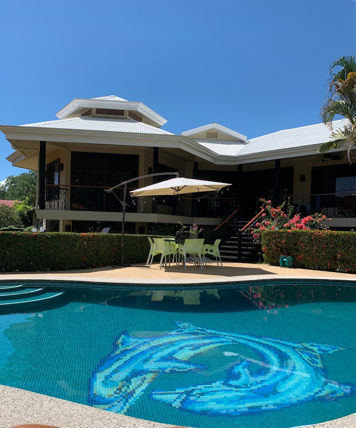 Casa Bella de Osa - это современный, стильный и просторный пляжный дом! Большой дом С 3 спальнями И 2 ванными комнатами С Wi-Fi, бассейном, кондиционером (ТОЛЬКО В СПАЛЬНЕ В ЛОФТЕ). и много зон отдыха, тропический душ на открытом воздухе, высокие потолки с вентиляторами - это идеальный дом для отдыха. В 2 минутах ходьбы от дома находится самый девственный пляж с пальмовой подкладкой в Коста-Рике. Сложно поверить, что в пределах этой природной красоты вы находитесь всего в 10 минутах езды от небольшого регионального аэропортового города Пуэрто-Хименес.