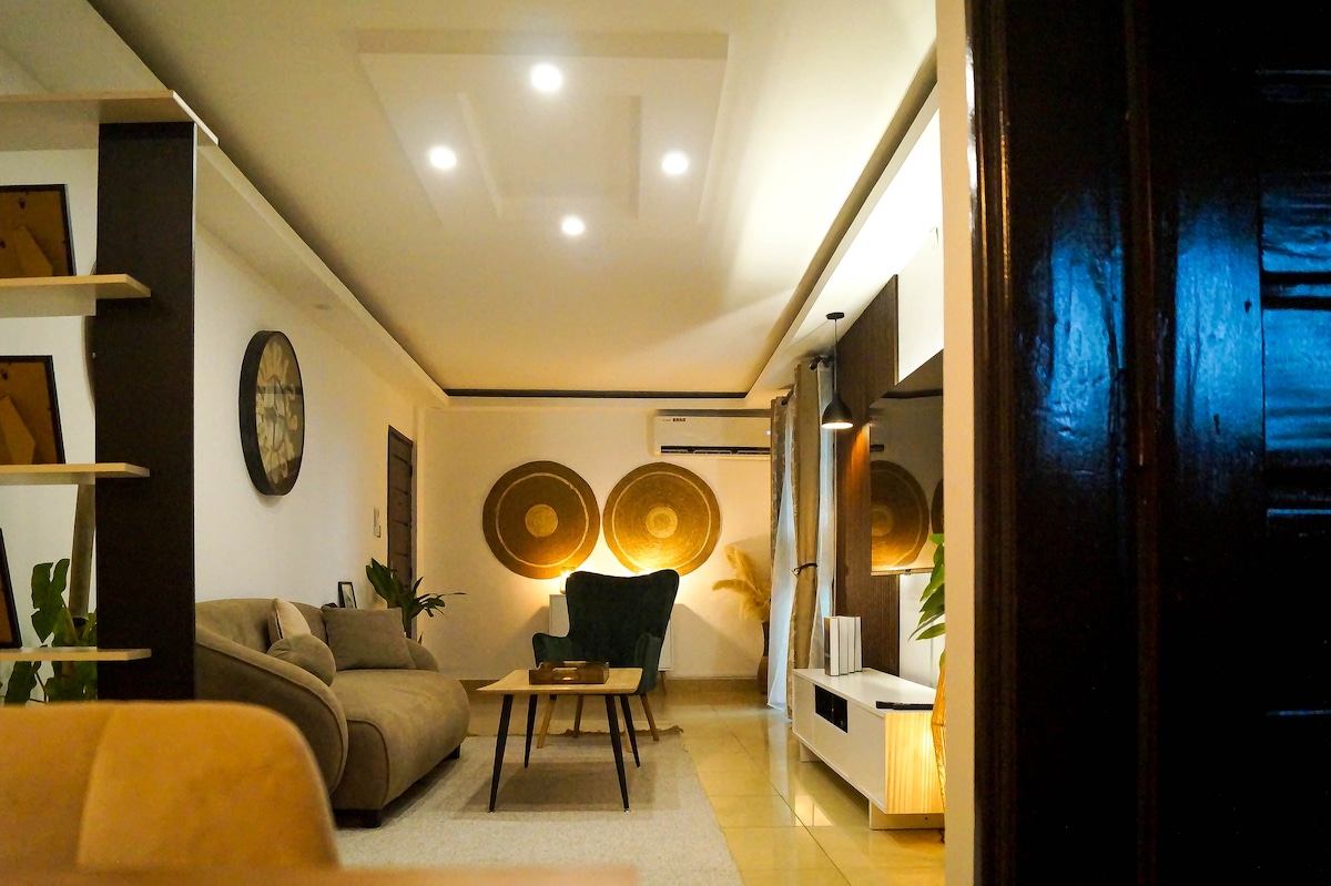 Остановитесь в центре Абиджана в этой великолепной новой квартире, спокойной и теплой, со вкусом оформленной в естественных тонах и современной атмосферой, способствующей отдыху. Эта просторная и полностью частная квартира расположена на 2-м этаже тихого и безопасного дома, идеально подходит для деловой поездки или спокойного отдыха. Жилье расположено в 25 минутах от Плато, в 35 минутах от аэропорта и в 10 минутах от торгового центра Abidjan Mall.