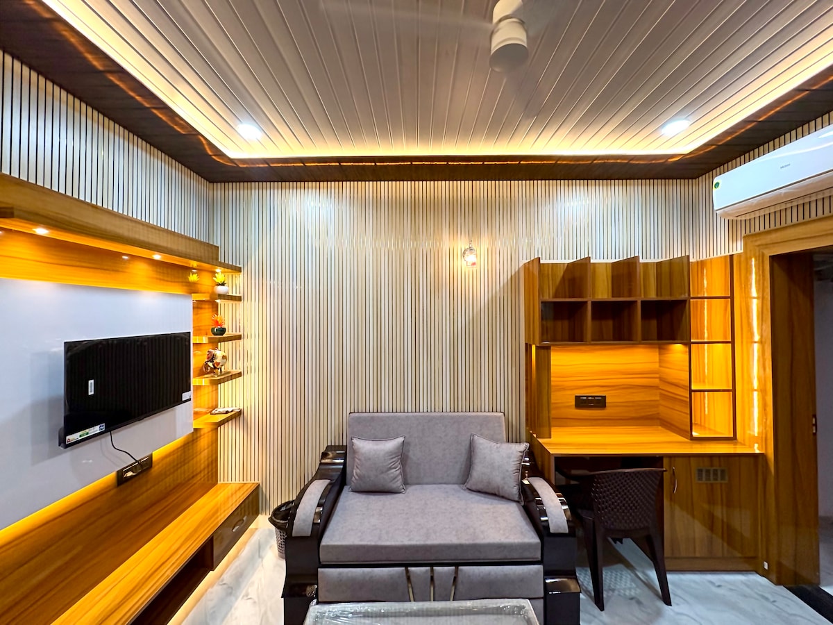 Отдохните в этой бюджетной квартире-студии в Лакхнау. Благодаря 55-дюймовому телевизору и двуспальной кровати размера King size это место лучше всего подходит для отдыха на выходных и работы из любой точки мира. В жилье есть все необходимое, например микроволновая печь, холодильник, чайник и т. д. Жилье расположено недалеко от центра города и идеально подходит для семей, пар, туристов и корпоративных/деловых путешественников, ищущих бюджетное жилье. Принимаются местные удостоверения личности!
